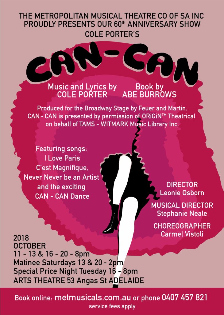 CAN-CAN is a songfest about Paris in 1893 and some of its more Bohemian citizens. Aristide Forestier, a young, newly-appointed and over-zealous magistrate, decides to undertake a reform movement. The first case before him is a charge against some young women that their dance, the cancan, has violated the Paris morals code. Acting with the unique wisdom of the French, the chief judge dismisses the case because all of the witnesses seem suddenly to have had cinders in their eyes when the crime was committed and so cannot testify. Aristide goes to Montmartre to investigate the matter personally.