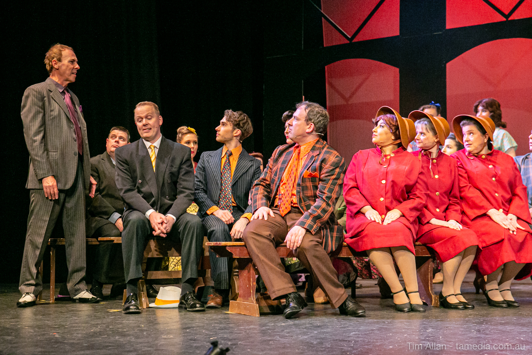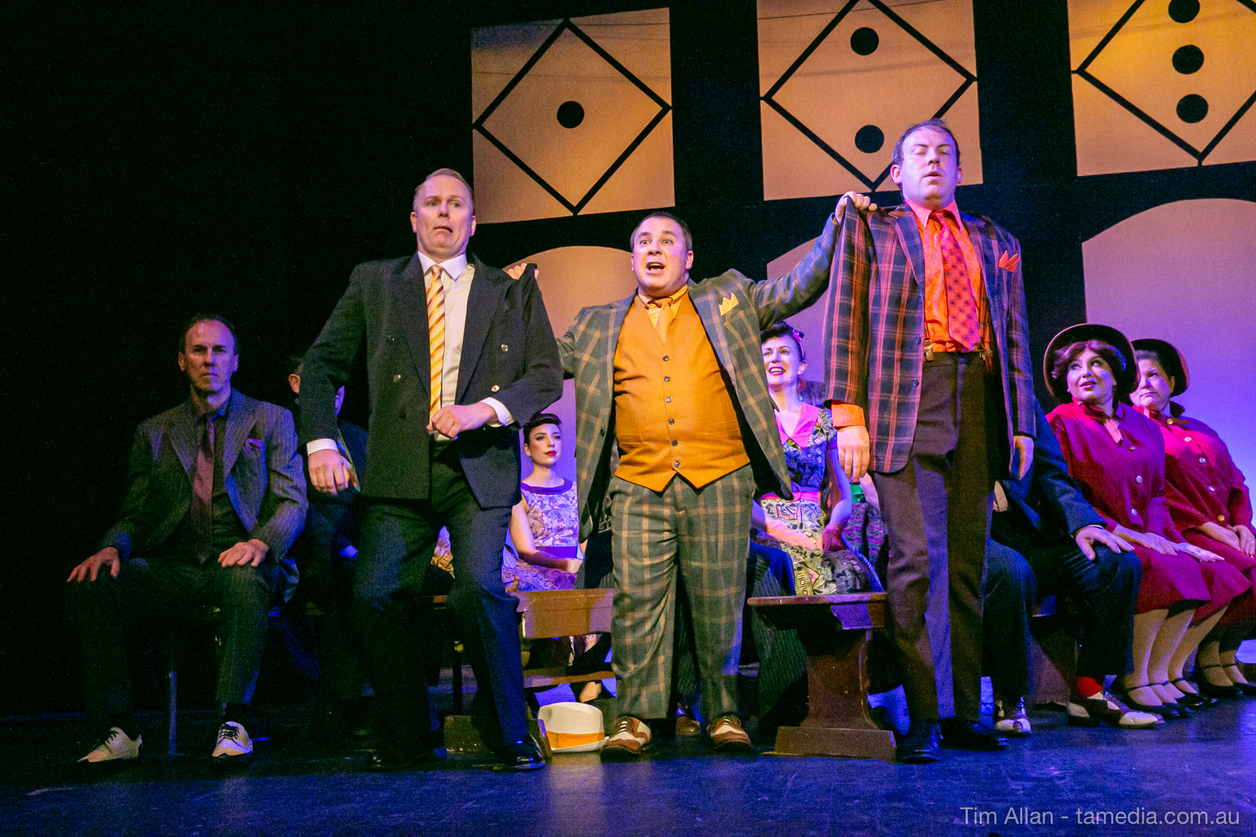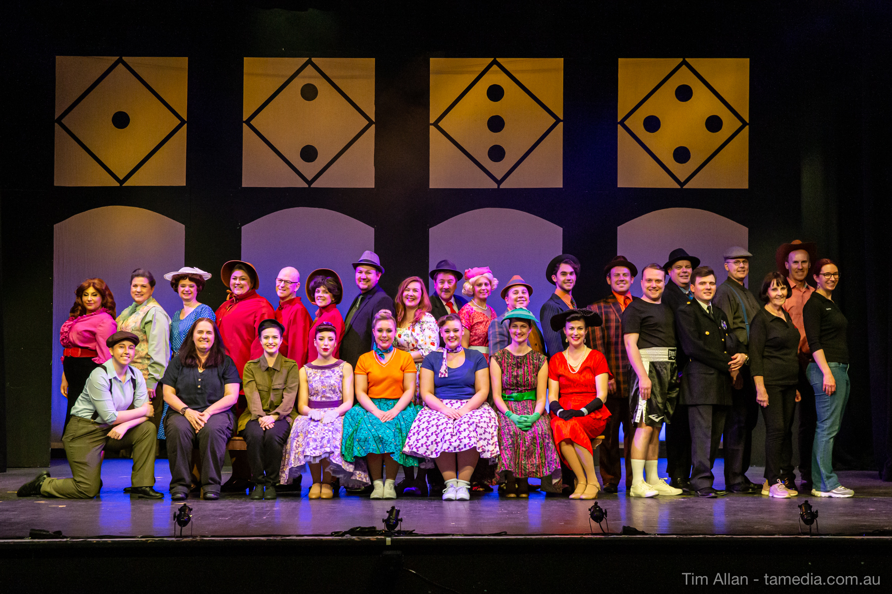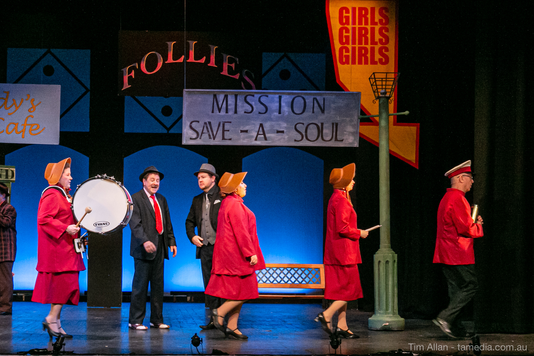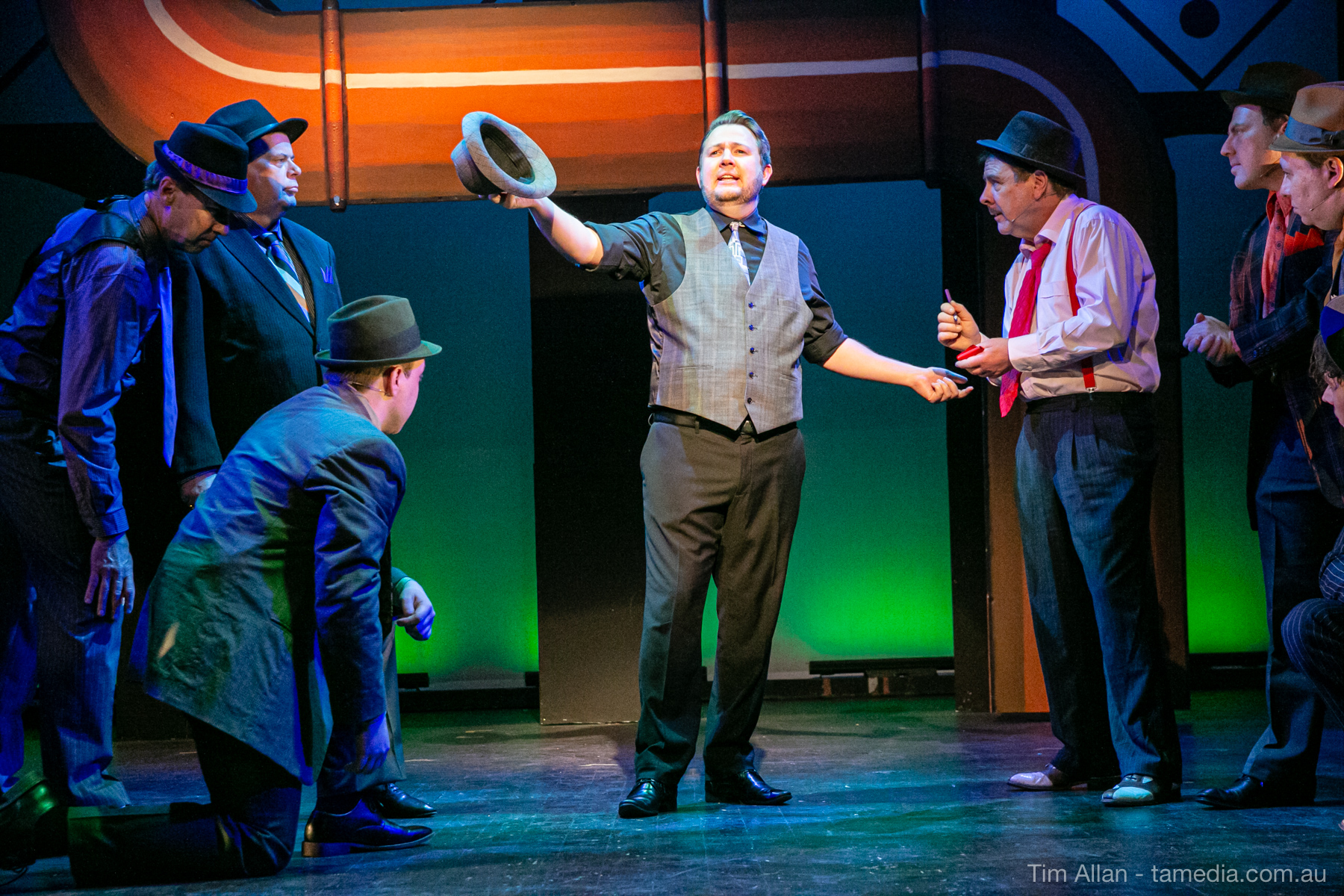 Set in the bustling Manhattan of Damon Runyon’s short stories, Guys and Dolls is a Depression era romantic comedy featuring crap games, horse races, gamblers, show girls and the evangelist members of a downtown Mission. Con-man Nathan Detroit is seeking a new location for his notorious ‘floating’ crap game, but he doesn’t have the dough he needs for a down payment. Enter Sky Masterson, a high-rolling gambler willing to take on any honest bet with a high enough reward attached. Nathan bets Sky that he can’t take the “doll”, of Nathan’s choosing, on a date to Havana, Cuba. When Sky agrees to the bet, Nathan chooses uptight Evangelist Sergeant Sarah Brown, head of Broadway’s Save-a-Soul Mission. Sky thinks he’s been duped, but he’s in for even more of a surprise when his efforts to woo Sarah are so successful that he falls in love with her himself! Meanwhile Nathan is under pressure from his long time ‘fiancee’ and night club dancer, Miss Adelaide, to settle down and get married. What are the odds?