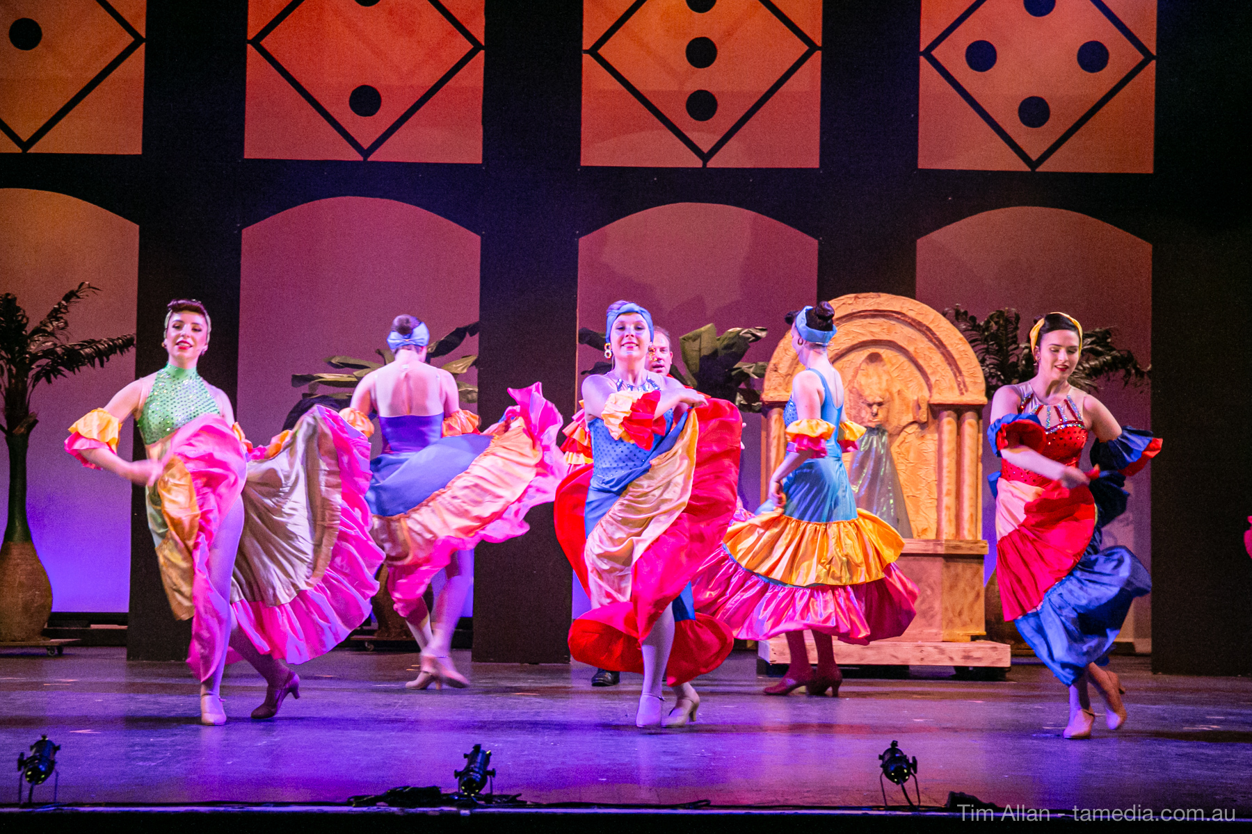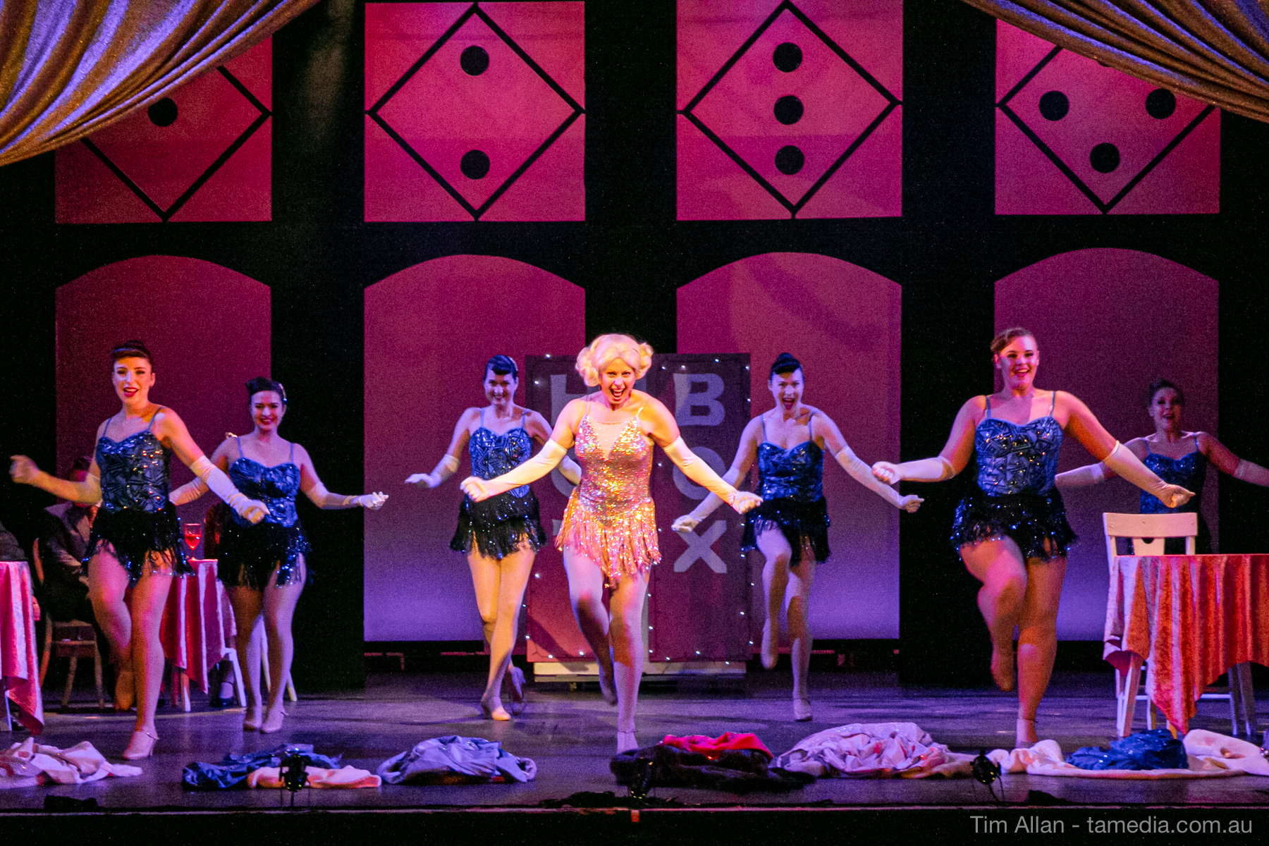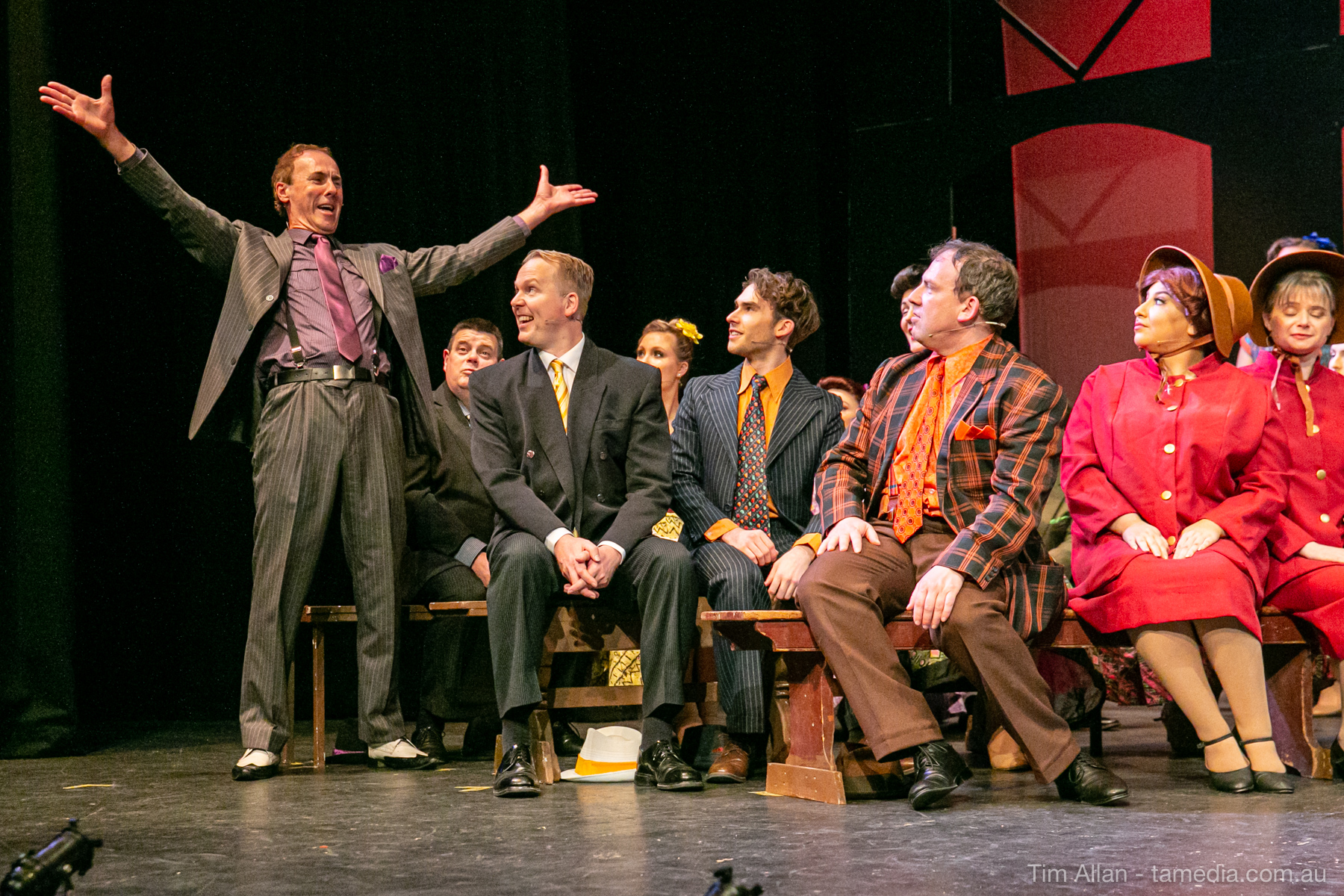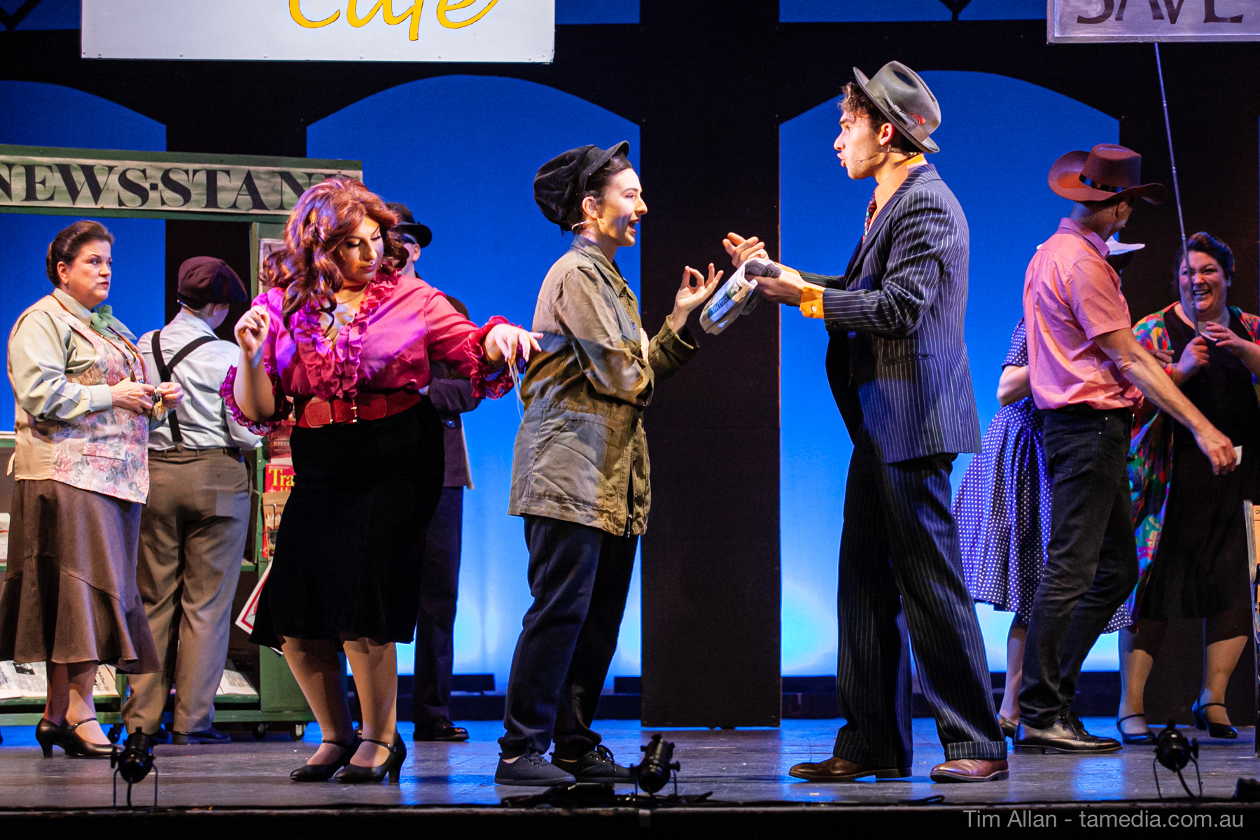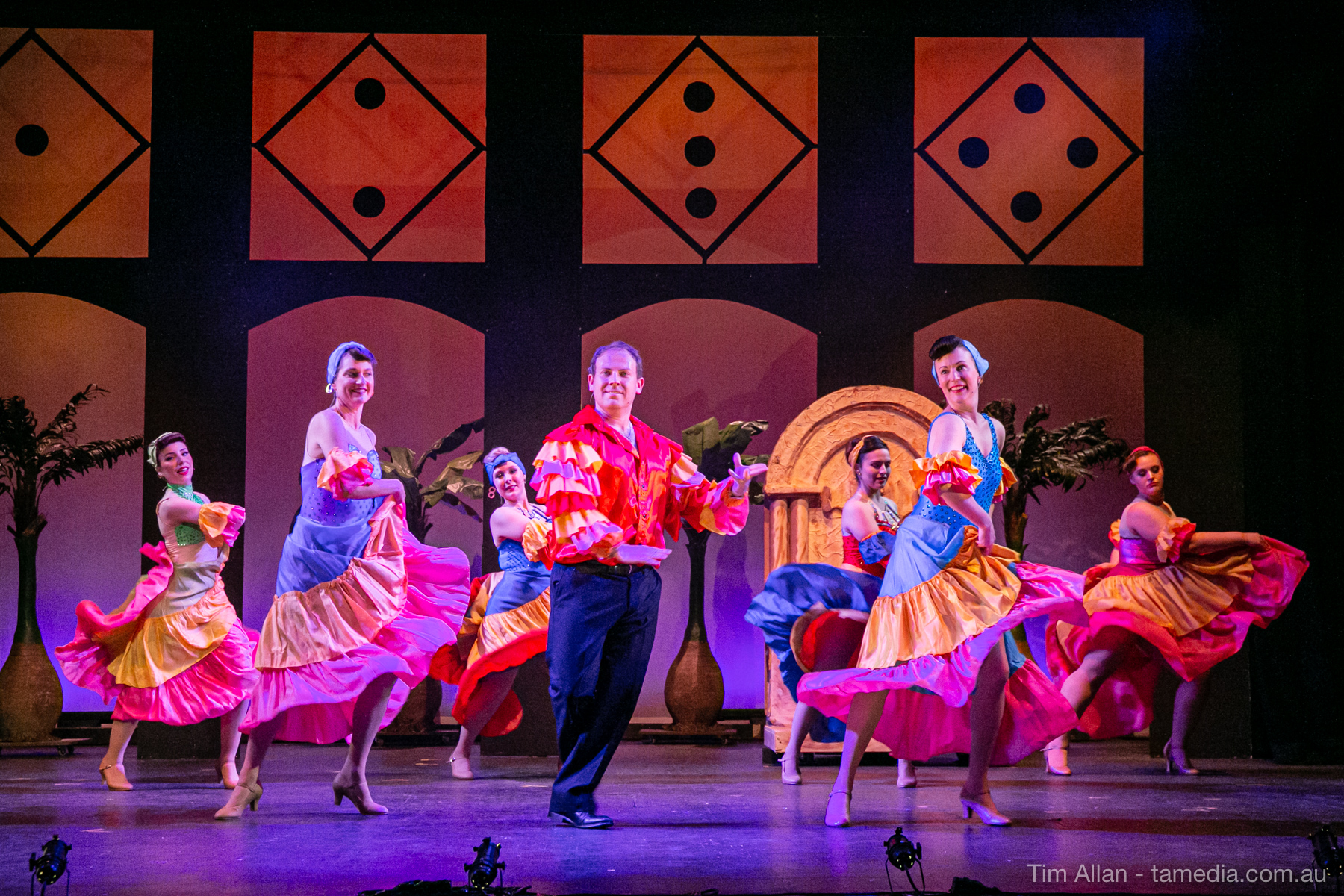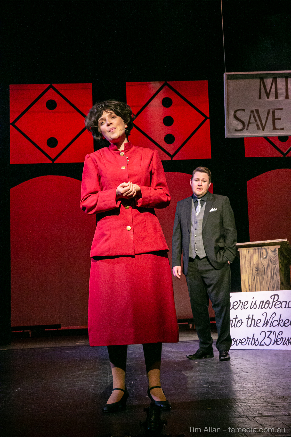 Set in the bustling Manhattan of Damon Runyon’s short stories, Guys and Dolls is a Depression era romantic comedy featuring crap games, horse races, gamblers, show girls and the evangelist members of a downtown Mission. Con-man Nathan Detroit is seeking a new location for his notorious ‘floating’ crap game, but he doesn’t have the dough he needs for a down payment. Enter Sky Masterson, a high-rolling gambler willing to take on any honest bet with a high enough reward attached. Nathan bets Sky that he can’t take the “doll”, of Nathan’s choosing, on a date to Havana, Cuba. When Sky agrees to the bet, Nathan chooses uptight Evangelist Sergeant Sarah Brown, head of Broadway’s Save-a-Soul Mission. Sky thinks he’s been duped, but he’s in for even more of a surprise when his efforts to woo Sarah are so successful that he falls in love with her himself! Meanwhile Nathan is under pressure from his long time ‘fiancee’ and night club dancer, Miss Adelaide, to settle down and get married. What are the odds?