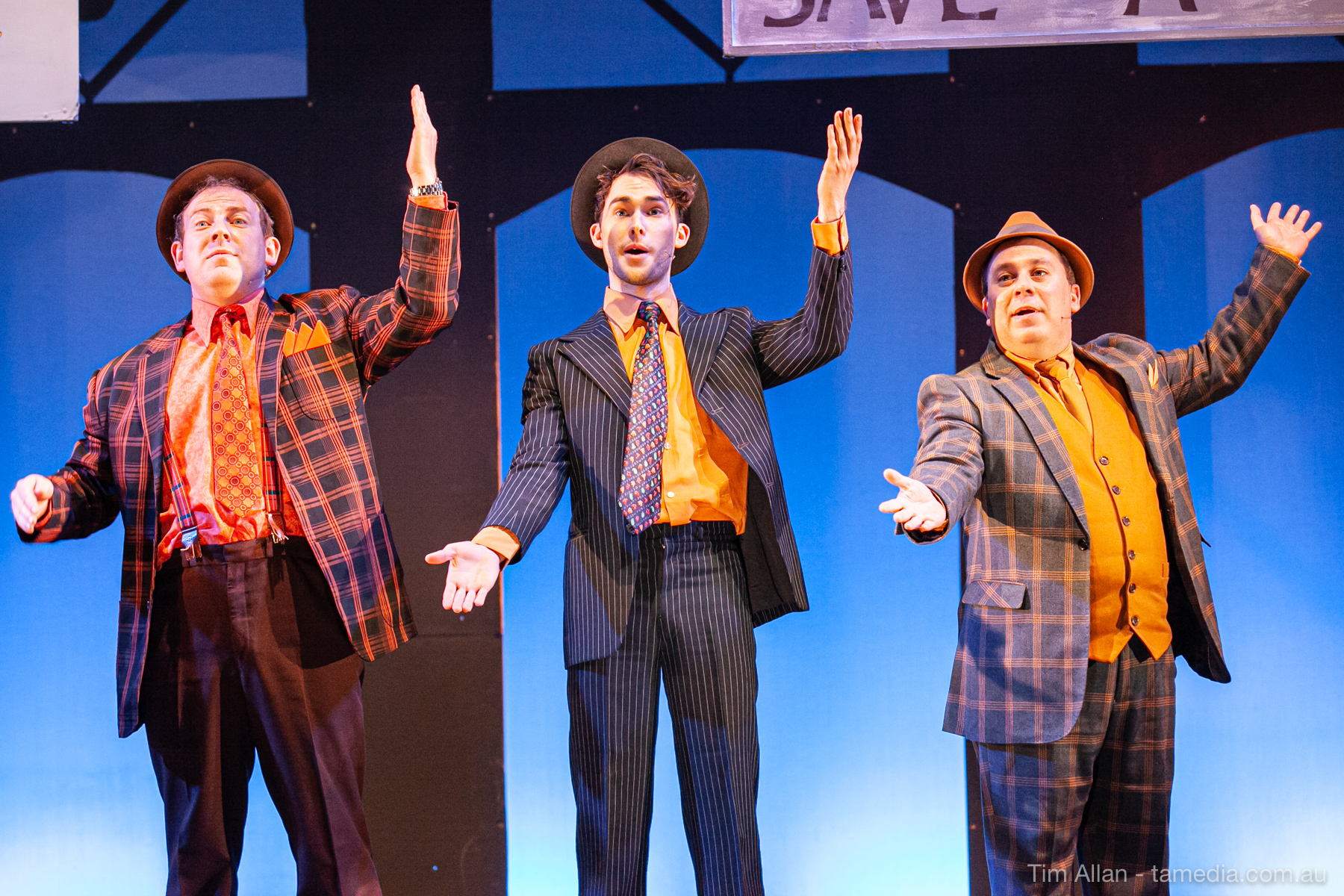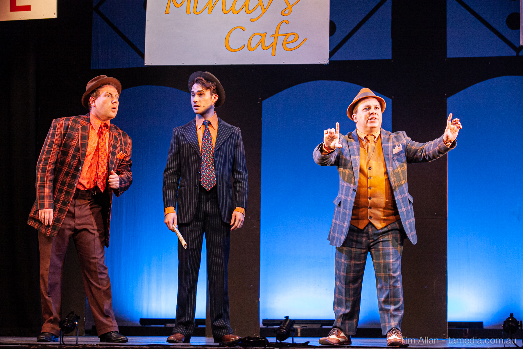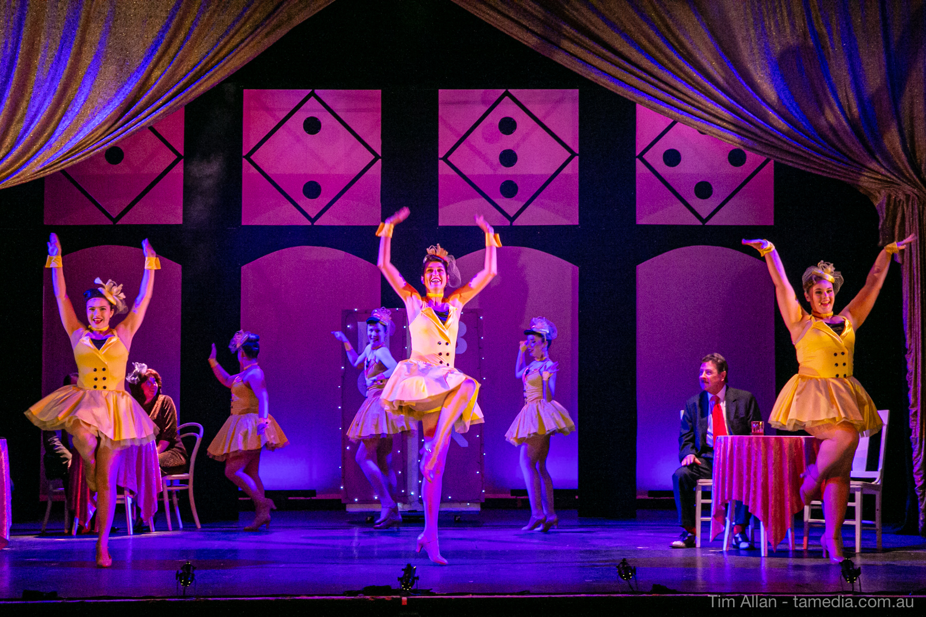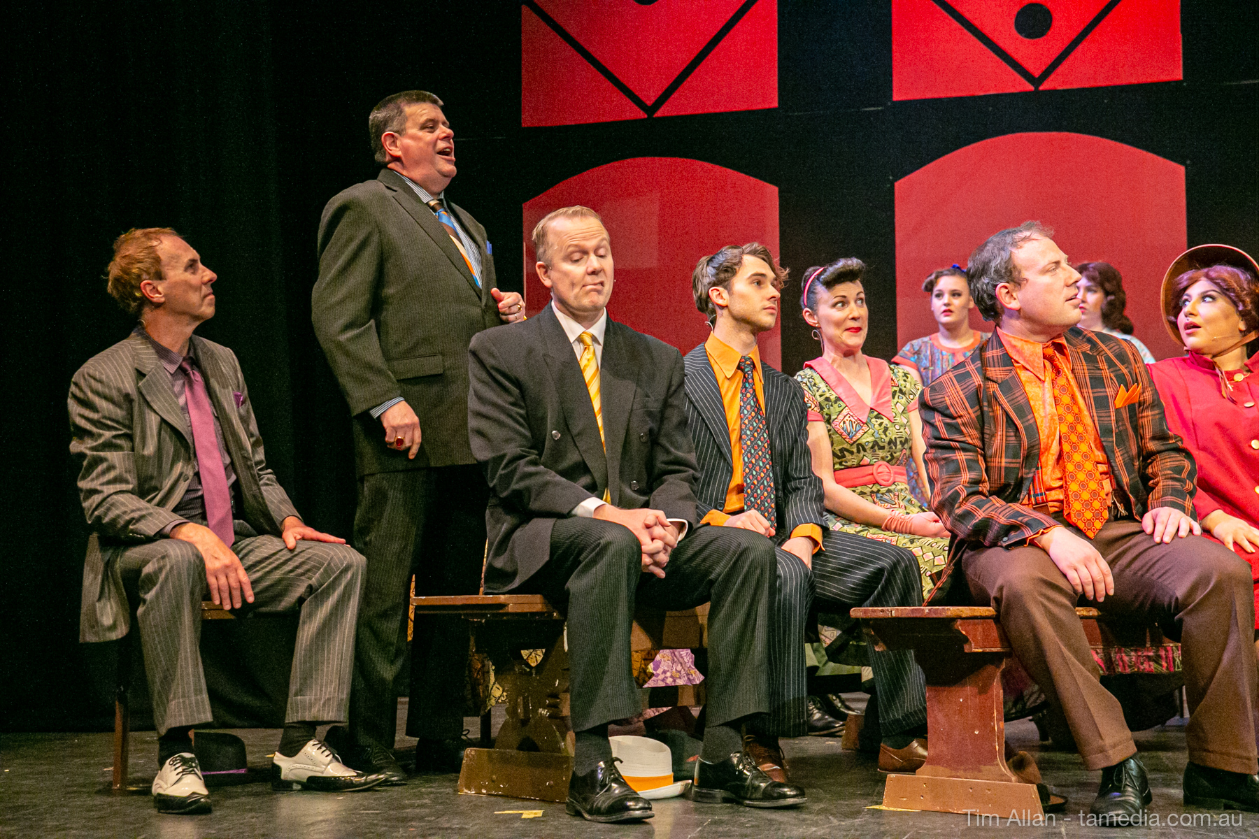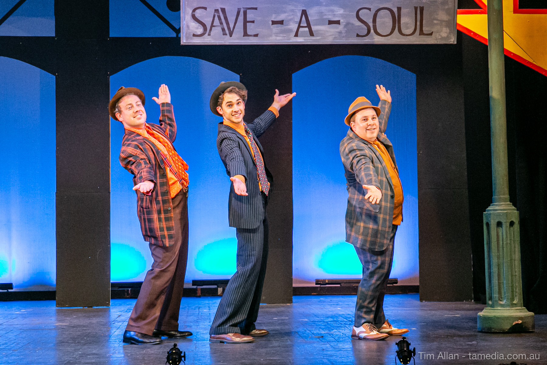 Set in the bustling Manhattan of Damon Runyon’s short stories, Guys and Dolls is a Depression era romantic comedy featuring crap games, horse races, gamblers, show girls and the evangelist members of a downtown Mission. Con-man Nathan Detroit is seeking a new location for his notorious ‘floating’ crap game, but he doesn’t have the dough he needs for a down payment. Enter Sky Masterson, a high-rolling gambler willing to take on any honest bet with a high enough reward attached. Nathan bets Sky that he can’t take the “doll”, of Nathan’s choosing, on a date to Havana, Cuba. When Sky agrees to the bet, Nathan chooses uptight Evangelist Sergeant Sarah Brown, head of Broadway’s Save-a-Soul Mission. Sky thinks he’s been duped, but he’s in for even more of a surprise when his efforts to woo Sarah are so successful that he falls in love with her himself! Meanwhile Nathan is under pressure from his long time ‘fiancee’ and night club dancer, Miss Adelaide, to settle down and get married. What are the odds?