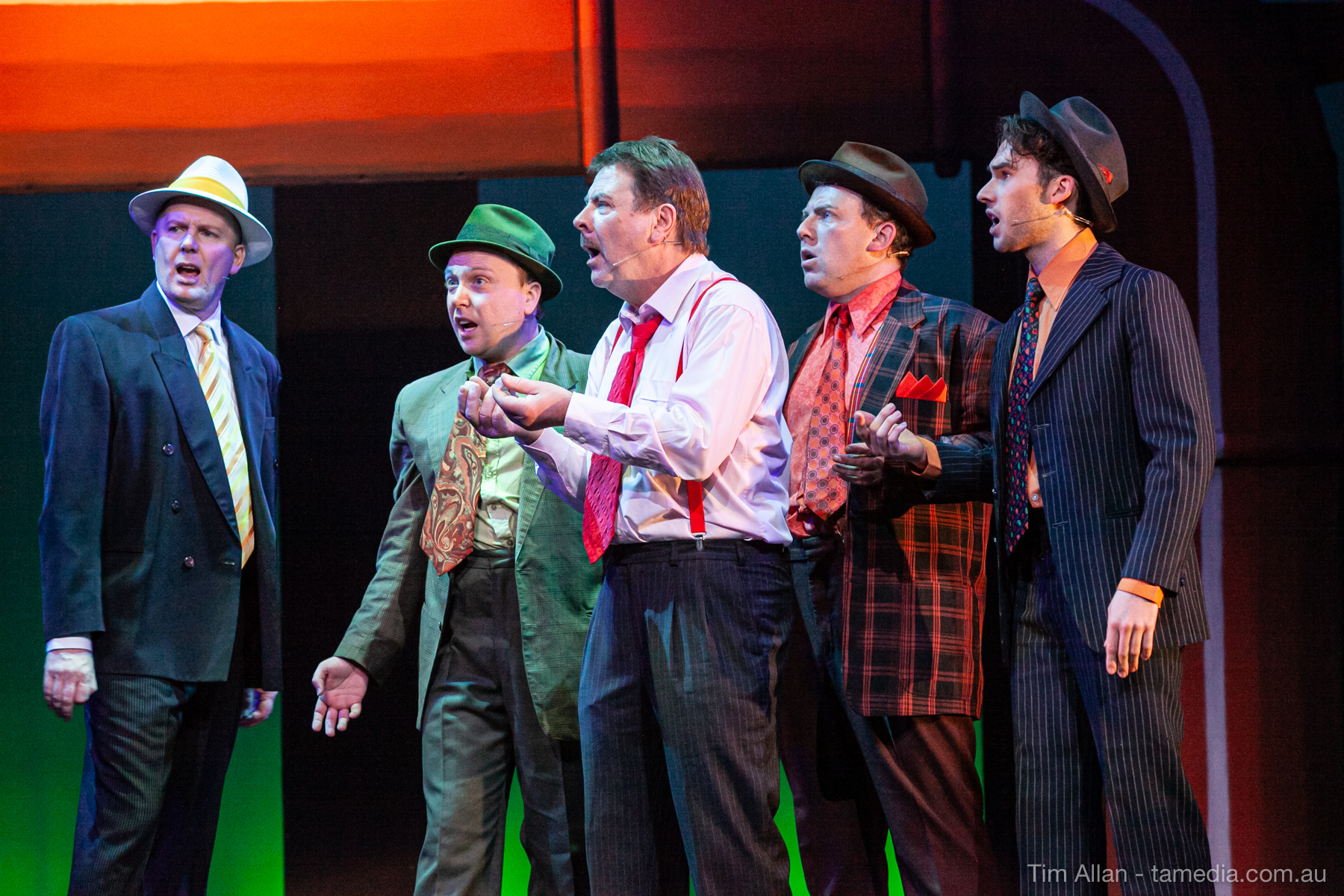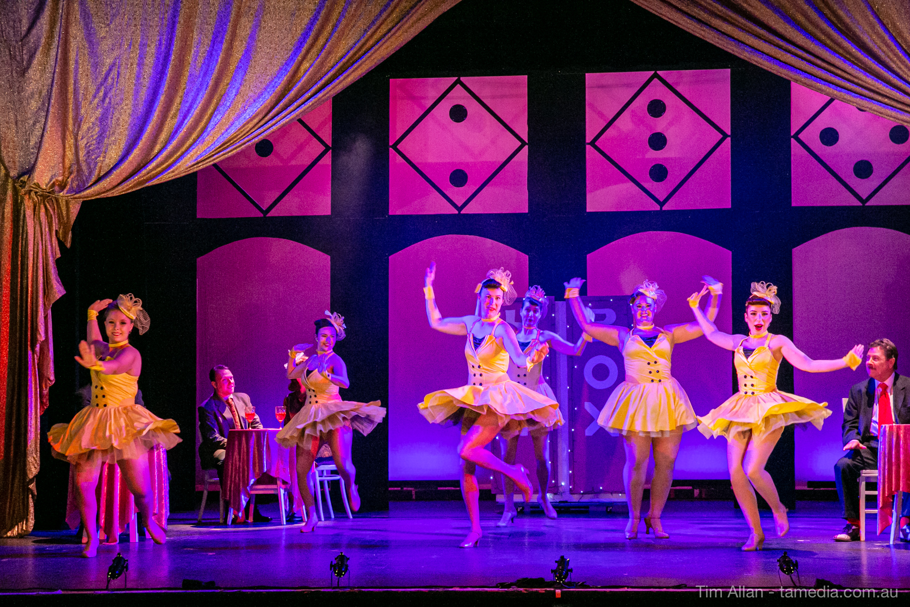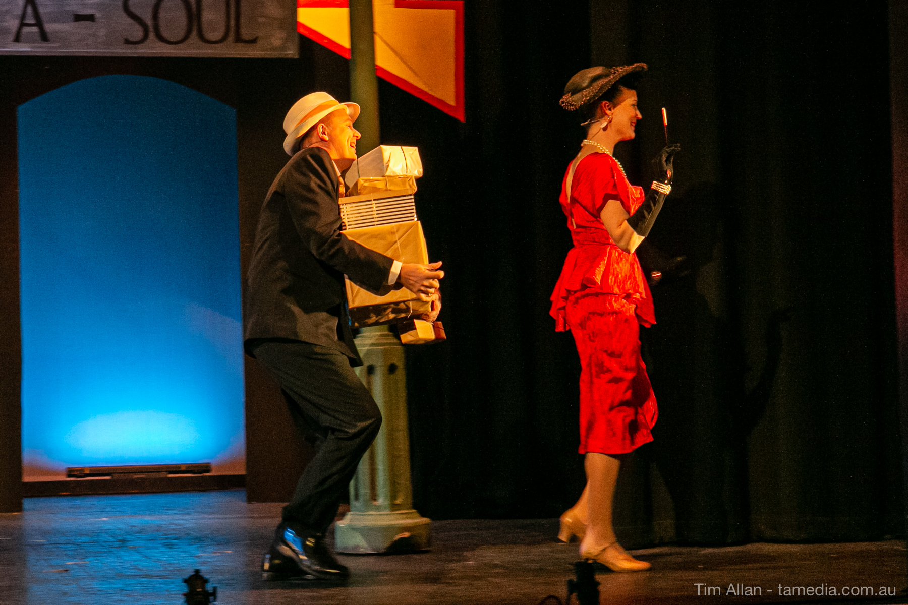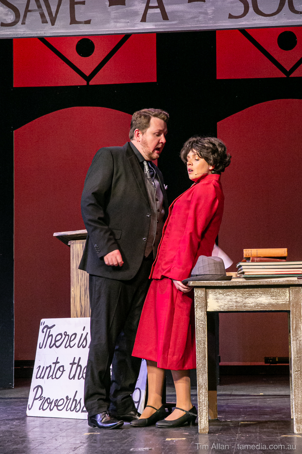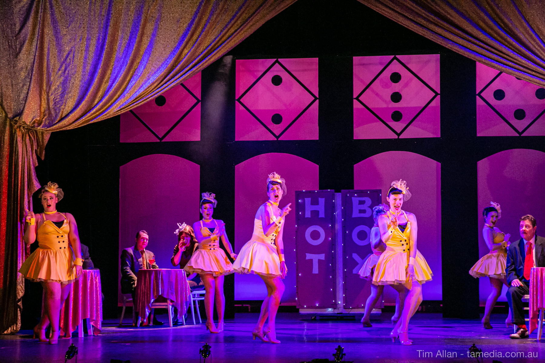 Set in the bustling Manhattan of Damon Runyon’s short stories, Guys and Dolls is a Depression era romantic comedy featuring crap games, horse races, gamblers, show girls and the evangelist members of a downtown Mission. Con-man Nathan Detroit is seeking a new location for his notorious ‘floating’ crap game, but he doesn’t have the dough he needs for a down payment. Enter Sky Masterson, a high-rolling gambler willing to take on any honest bet with a high enough reward attached. Nathan bets Sky that he can’t take the “doll”, of Nathan’s choosing, on a date to Havana, Cuba. When Sky agrees to the bet, Nathan chooses uptight Evangelist Sergeant Sarah Brown, head of Broadway’s Save-a-Soul Mission. Sky thinks he’s been duped, but he’s in for even more of a surprise when his efforts to woo Sarah are so successful that he falls in love with her himself! Meanwhile Nathan is under pressure from his long time ‘fiancee’ and night club dancer, Miss Adelaide, to settle down and get married. What are the odds?