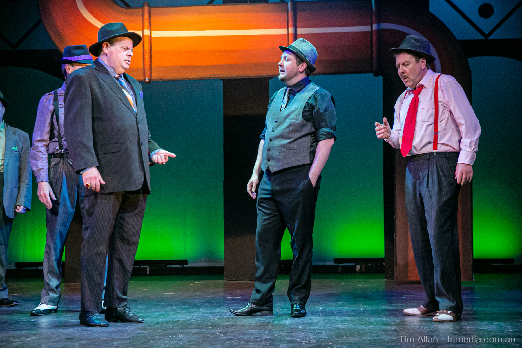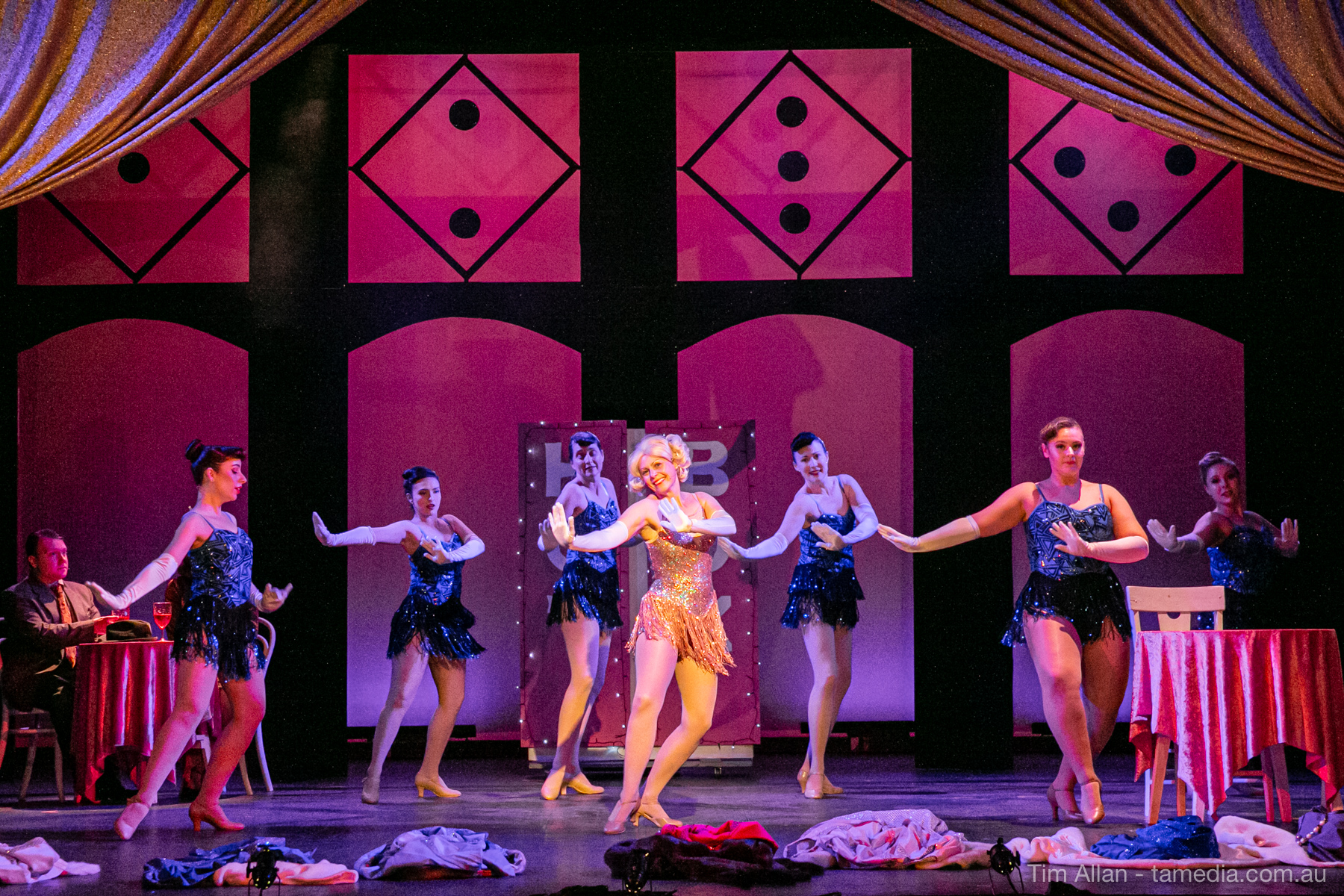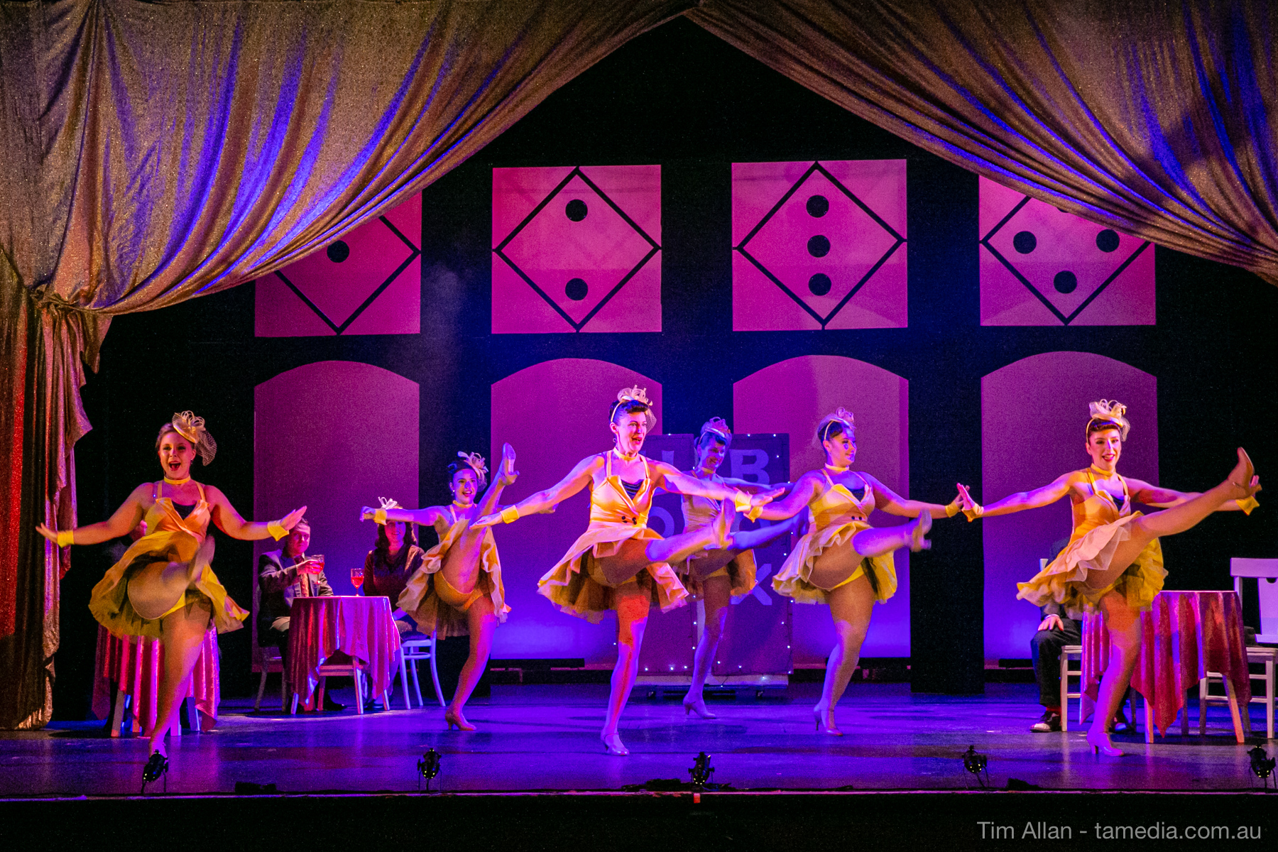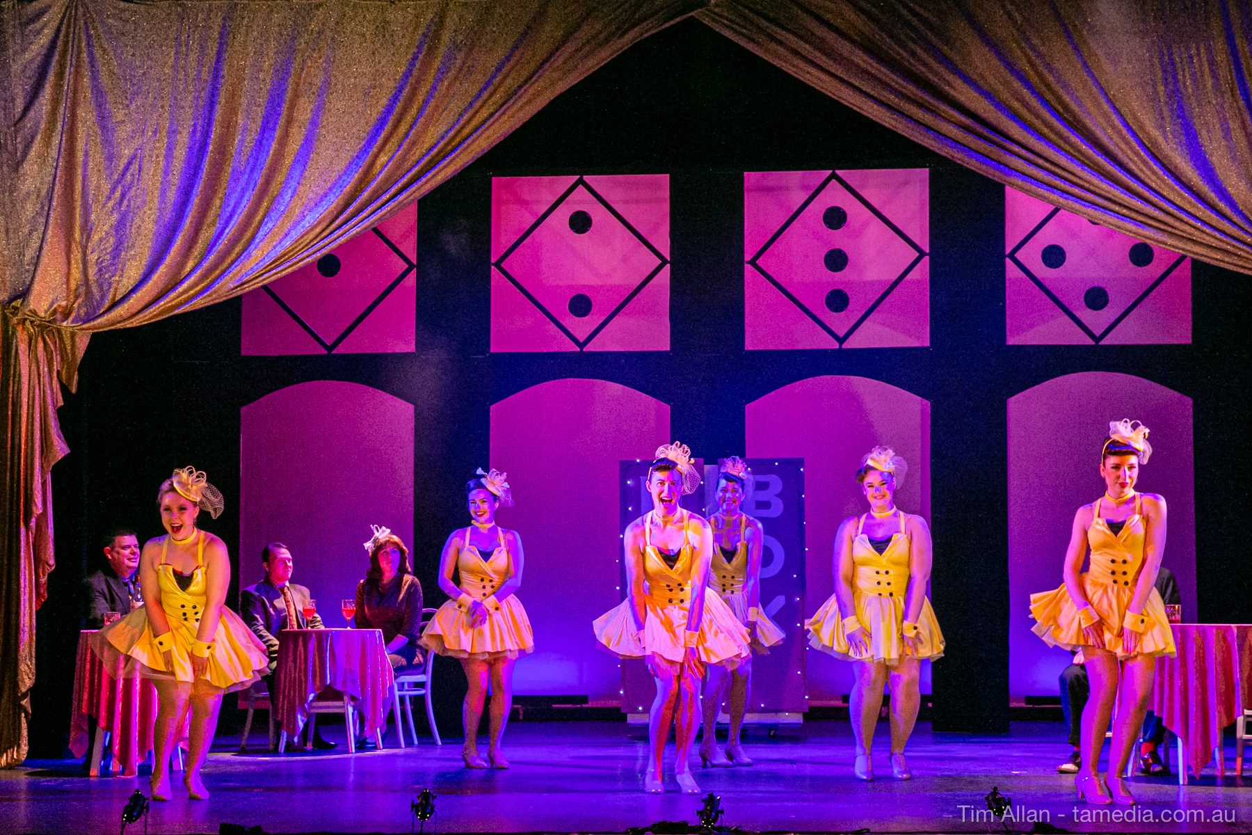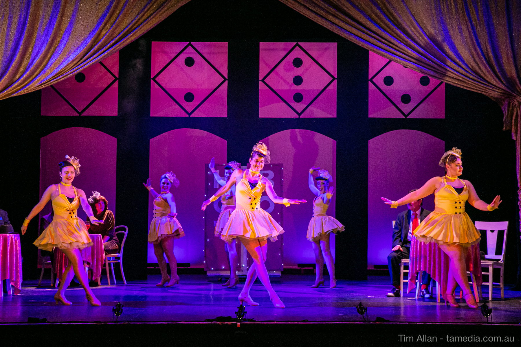 Set in the bustling Manhattan of Damon Runyon’s short stories, Guys and Dolls is a Depression era romantic comedy featuring crap games, horse races, gamblers, show girls and the evangelist members of a downtown Mission. Con-man Nathan Detroit is seeking a new location for his notorious ‘floating’ crap game, but he doesn’t have the dough he needs for a down payment. Enter Sky Masterson, a high-rolling gambler willing to take on any honest bet with a high enough reward attached. Nathan bets Sky that he can’t take the “doll”, of Nathan’s choosing, on a date to Havana, Cuba. When Sky agrees to the bet, Nathan chooses uptight Evangelist Sergeant Sarah Brown, head of Broadway’s Save-a-Soul Mission. Sky thinks he’s been duped, but he’s in for even more of a surprise when his efforts to woo Sarah are so successful that he falls in love with her himself! Meanwhile Nathan is under pressure from his long time ‘fiancee’ and night club dancer, Miss Adelaide, to settle down and get married. What are the odds?