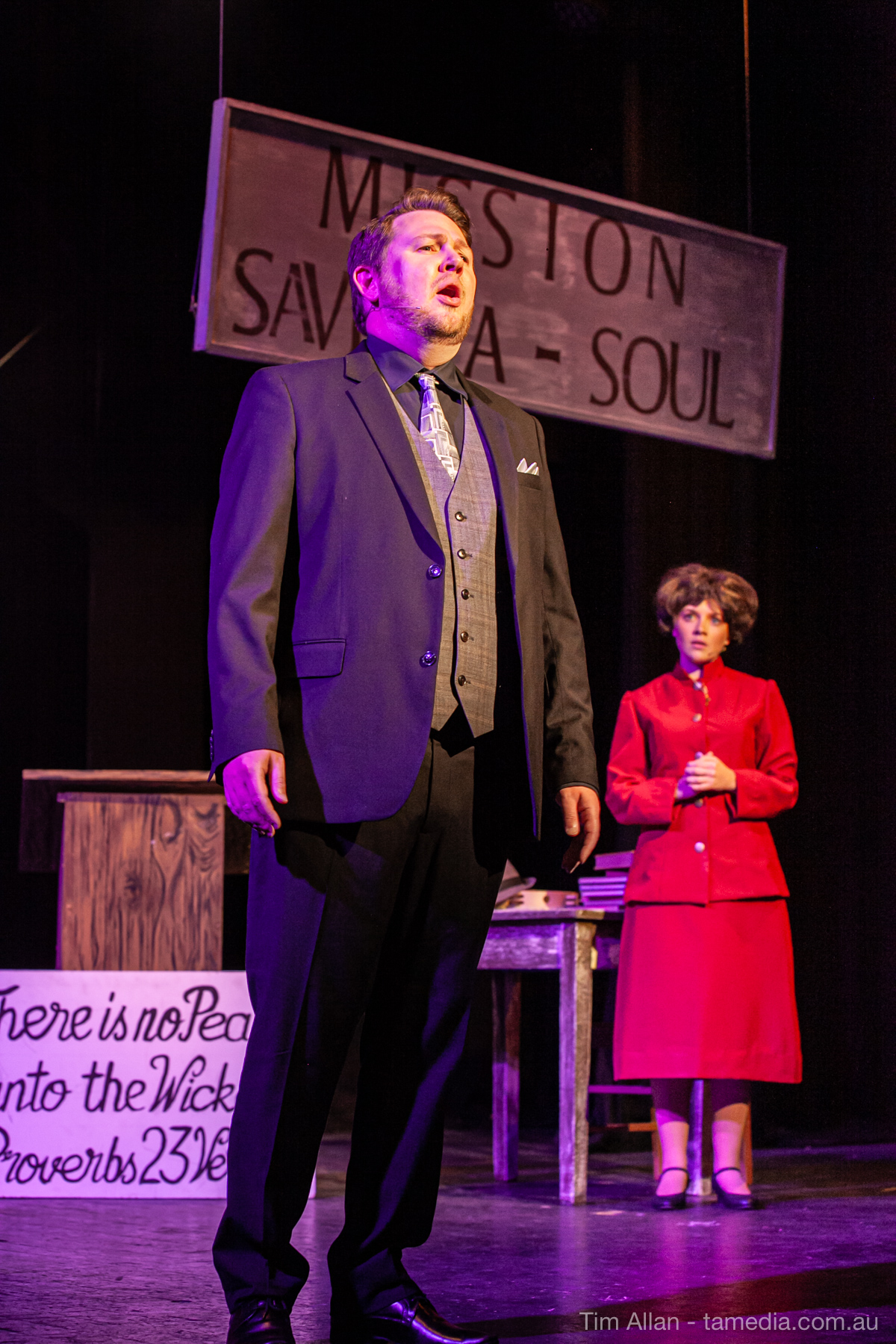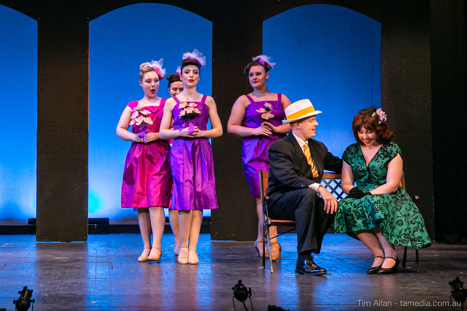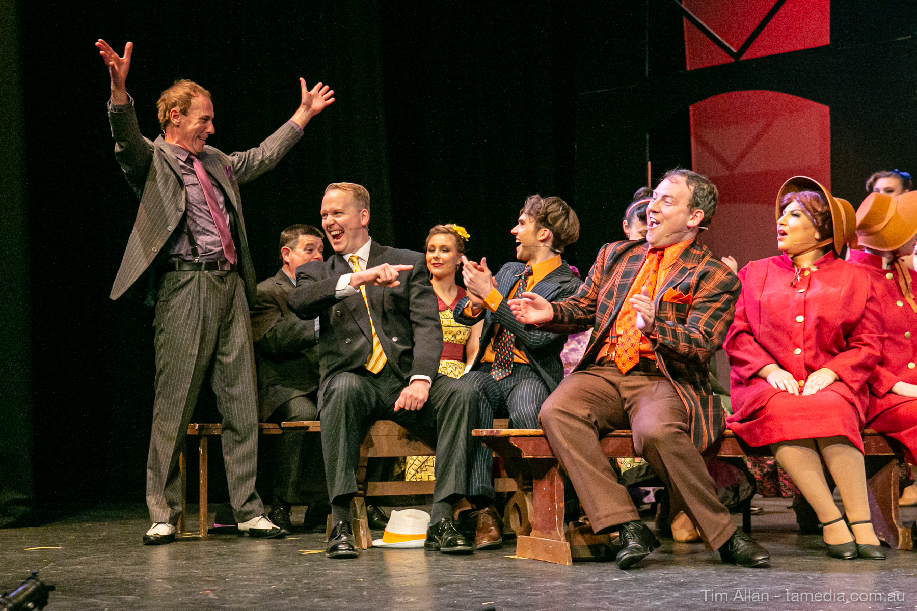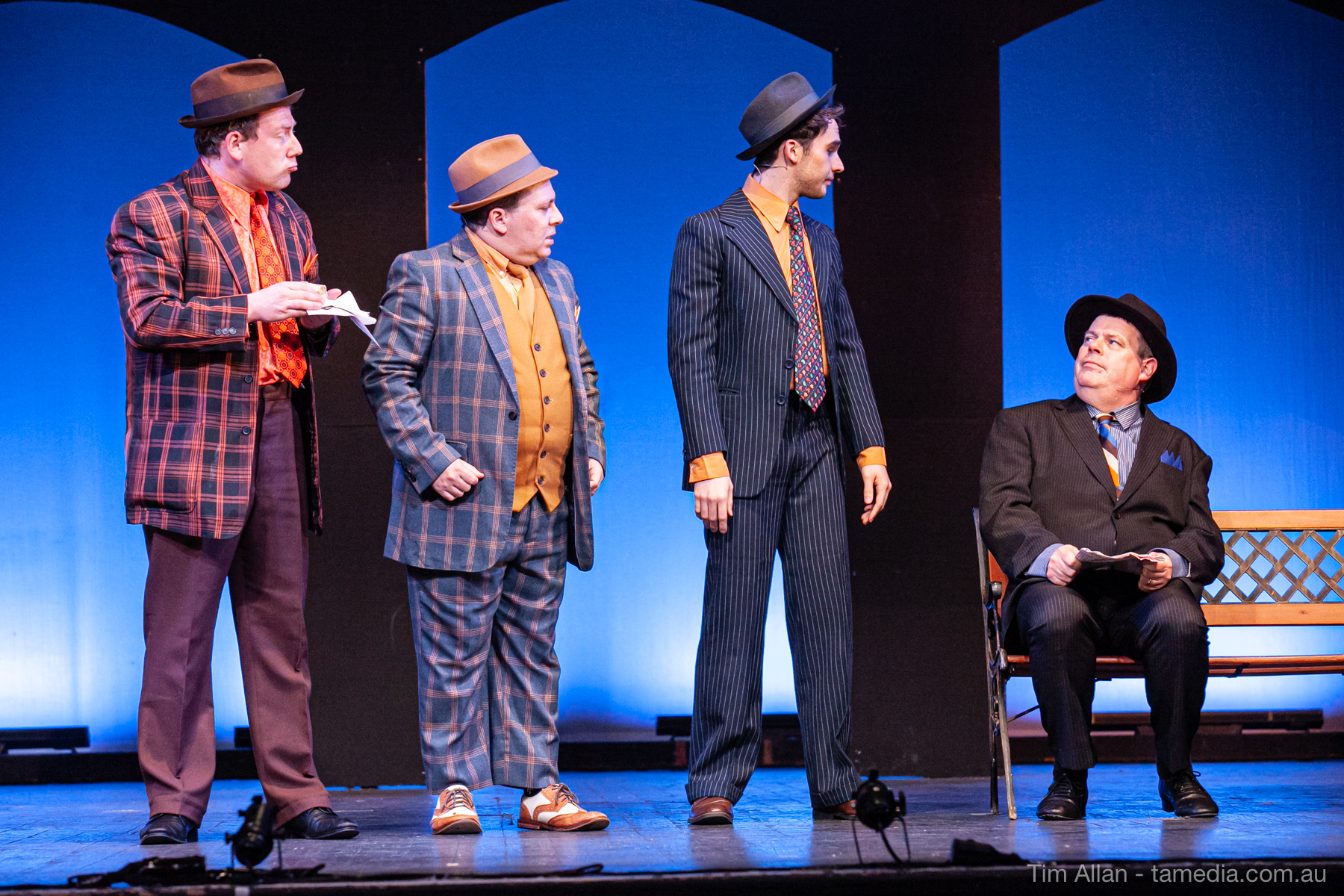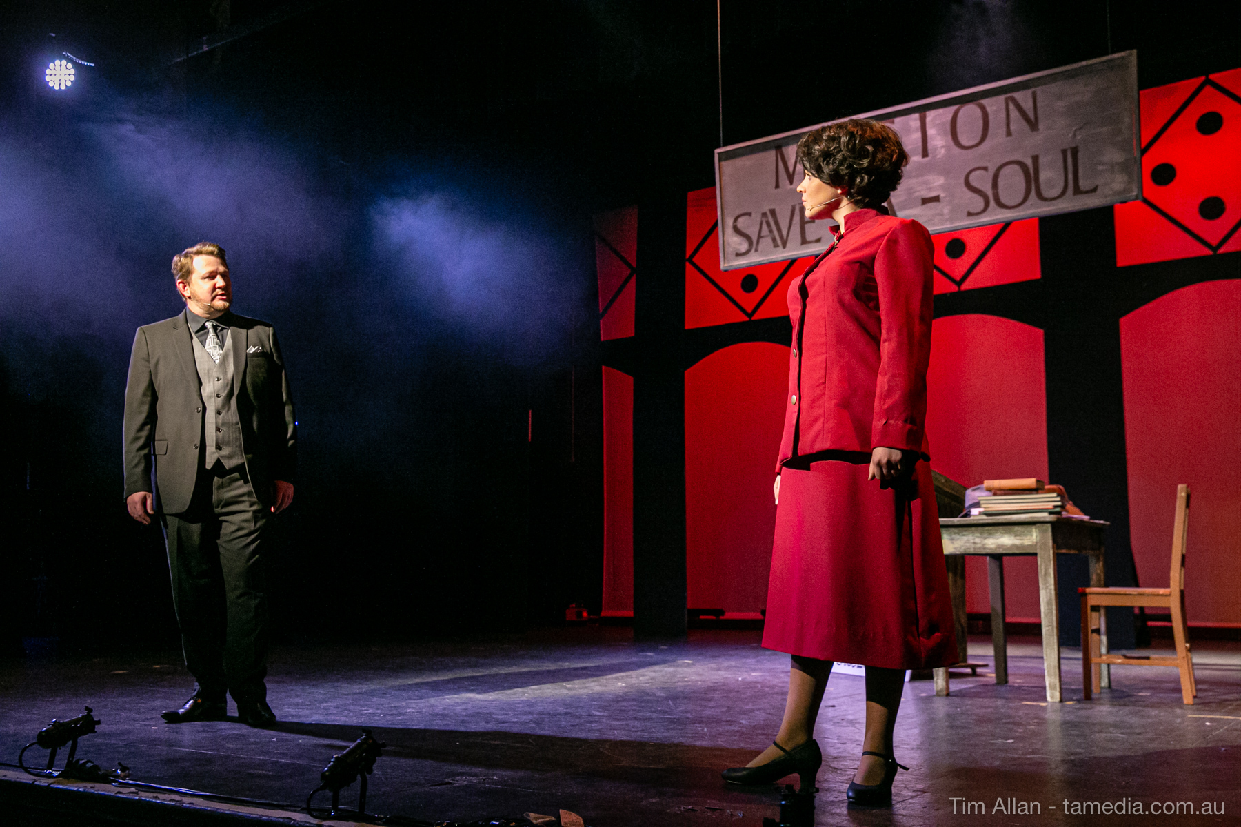 Set in the bustling Manhattan of Damon Runyon’s short stories, Guys and Dolls is a Depression era romantic comedy featuring crap games, horse races, gamblers, show girls and the evangelist members of a downtown Mission. Con-man Nathan Detroit is seeking a new location for his notorious ‘floating’ crap game, but he doesn’t have the dough he needs for a down payment. Enter Sky Masterson, a high-rolling gambler willing to take on any honest bet with a high enough reward attached. Nathan bets Sky that he can’t take the “doll”, of Nathan’s choosing, on a date to Havana, Cuba. When Sky agrees to the bet, Nathan chooses uptight Evangelist Sergeant Sarah Brown, head of Broadway’s Save-a-Soul Mission. Sky thinks he’s been duped, but he’s in for even more of a surprise when his efforts to woo Sarah are so successful that he falls in love with her himself! Meanwhile Nathan is under pressure from his long time ‘fiancee’ and night club dancer, Miss Adelaide, to settle down and get married. What are the odds?