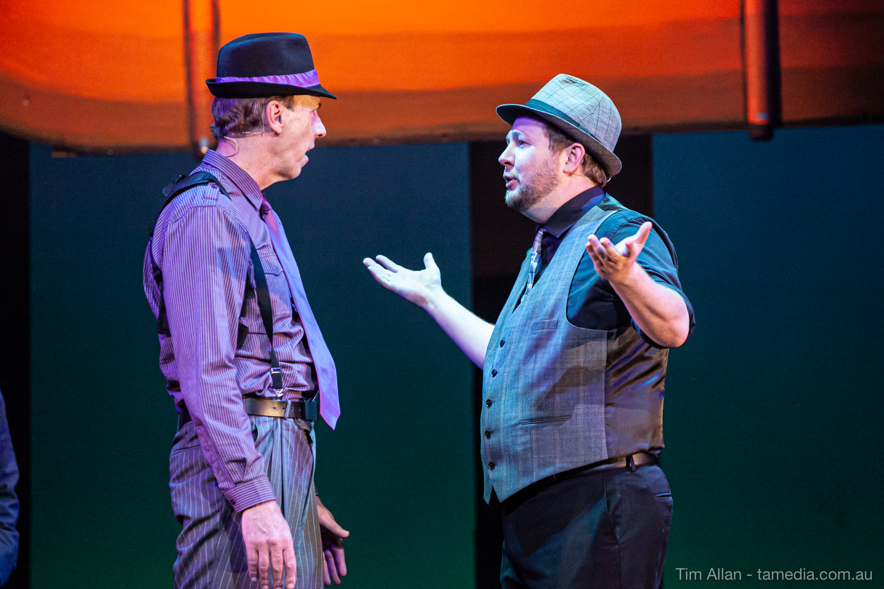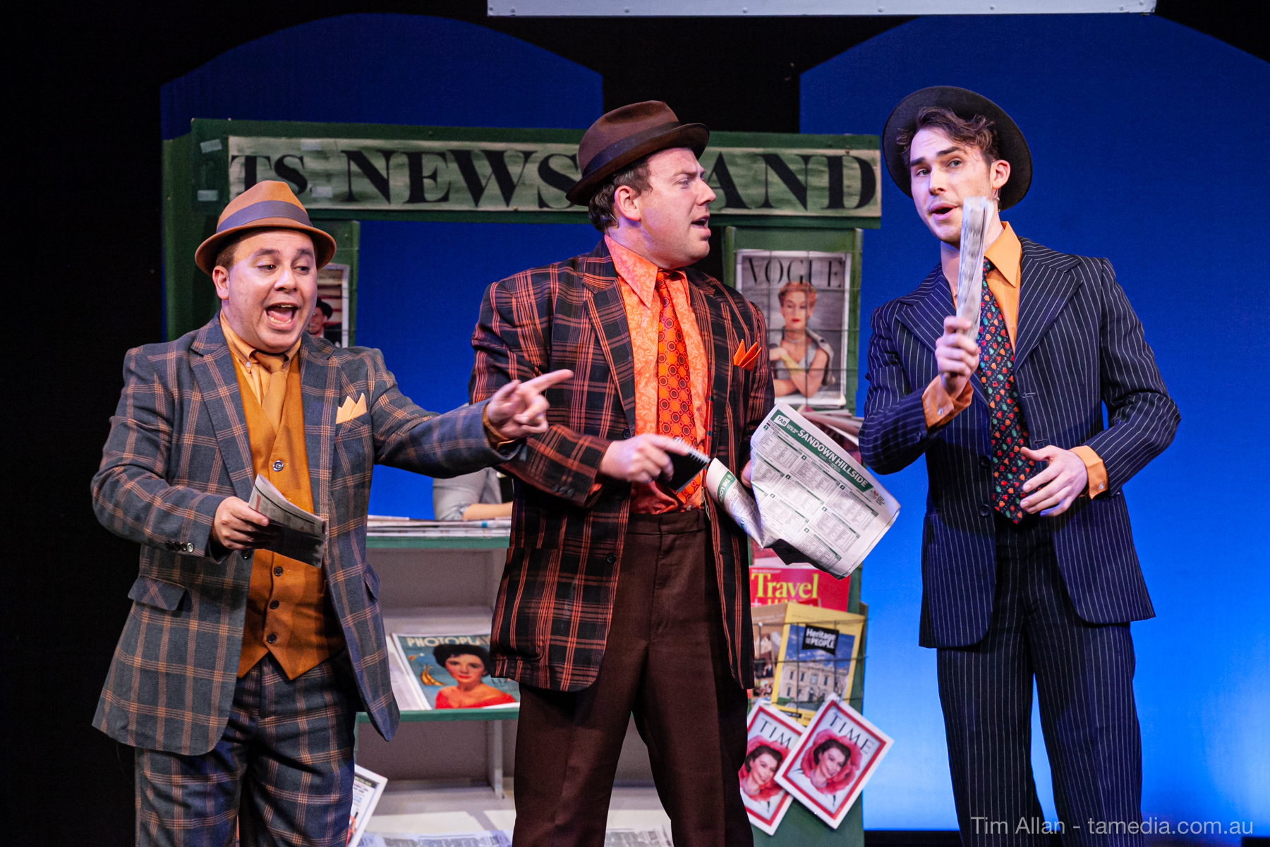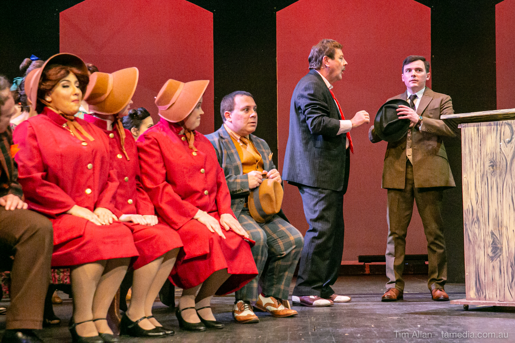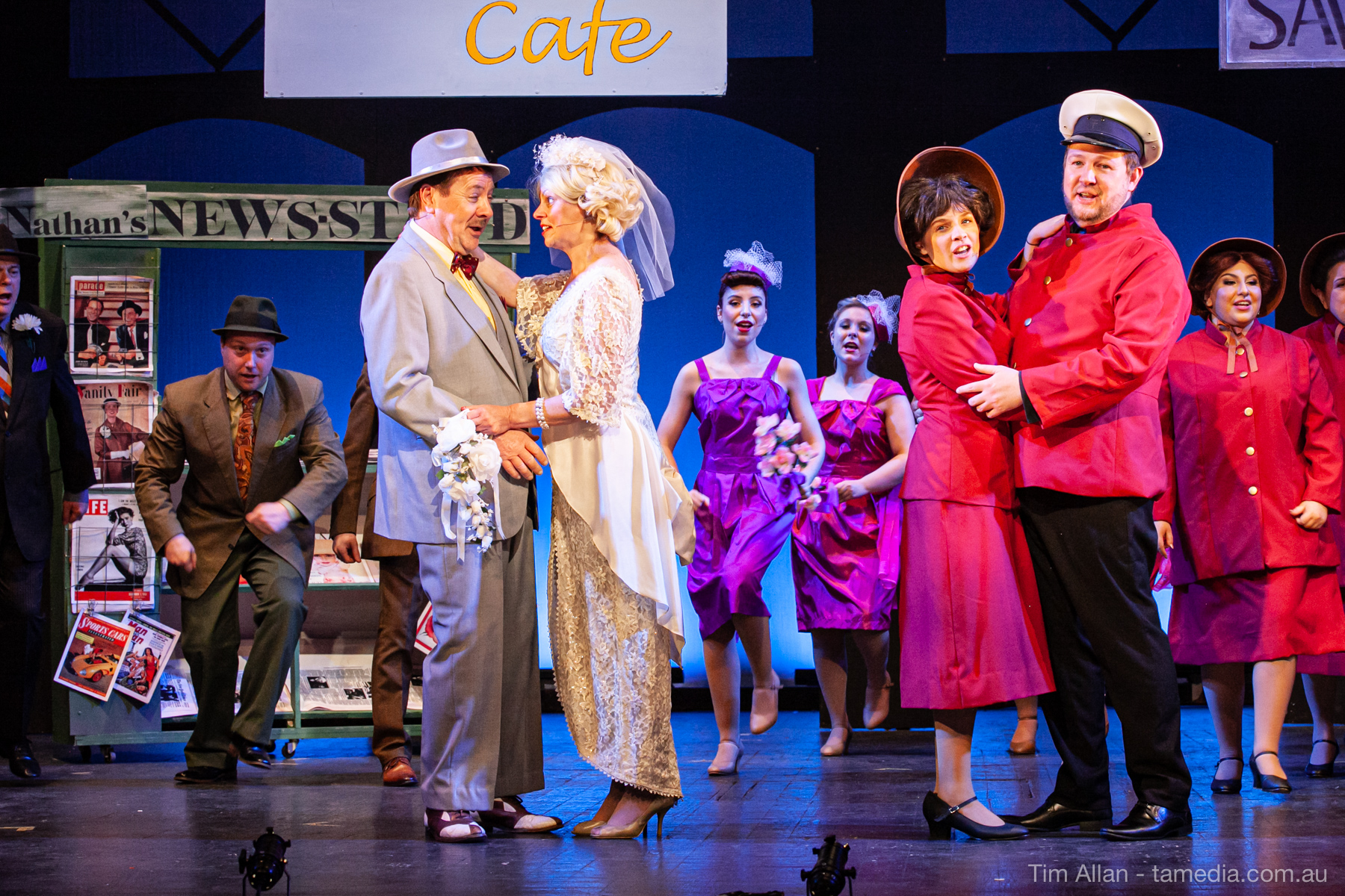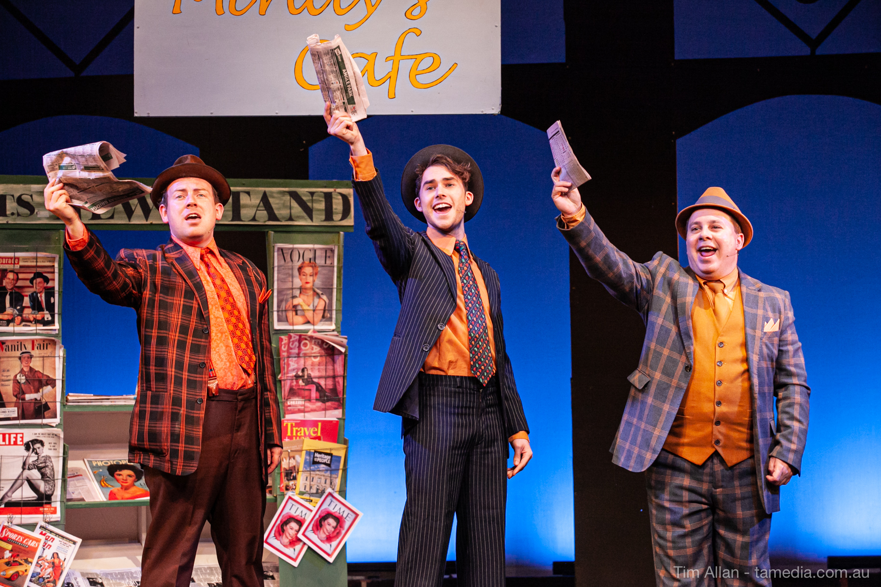Set in the bustling Manhattan of Damon Runyon’s short stories, Guys and Dolls is a Depression era romantic comedy featuring crap games, horse races, gamblers, show girls and the evangelist members of a downtown Mission. Con-man Nathan Detroit is seeking a new location for his notorious ‘floating’ crap game, but he doesn’t have the dough he needs for a down payment. Enter Sky Masterson, a high-rolling gambler willing to take on any honest bet with a high enough reward attached. Nathan bets Sky that he can’t take the “doll”, of Nathan’s choosing, on a date to Havana, Cuba. When Sky agrees to the bet, Nathan chooses uptight Evangelist Sergeant Sarah Brown, head of Broadway’s Save-a-Soul Mission. Sky thinks he’s been duped, but he’s in for even more of a surprise when his efforts to woo Sarah are so successful that he falls in love with her himself! Meanwhile Nathan is under pressure from his long time ‘fiancee’ and night club dancer, Miss Adelaide, to settle down and get married. What are the odds?