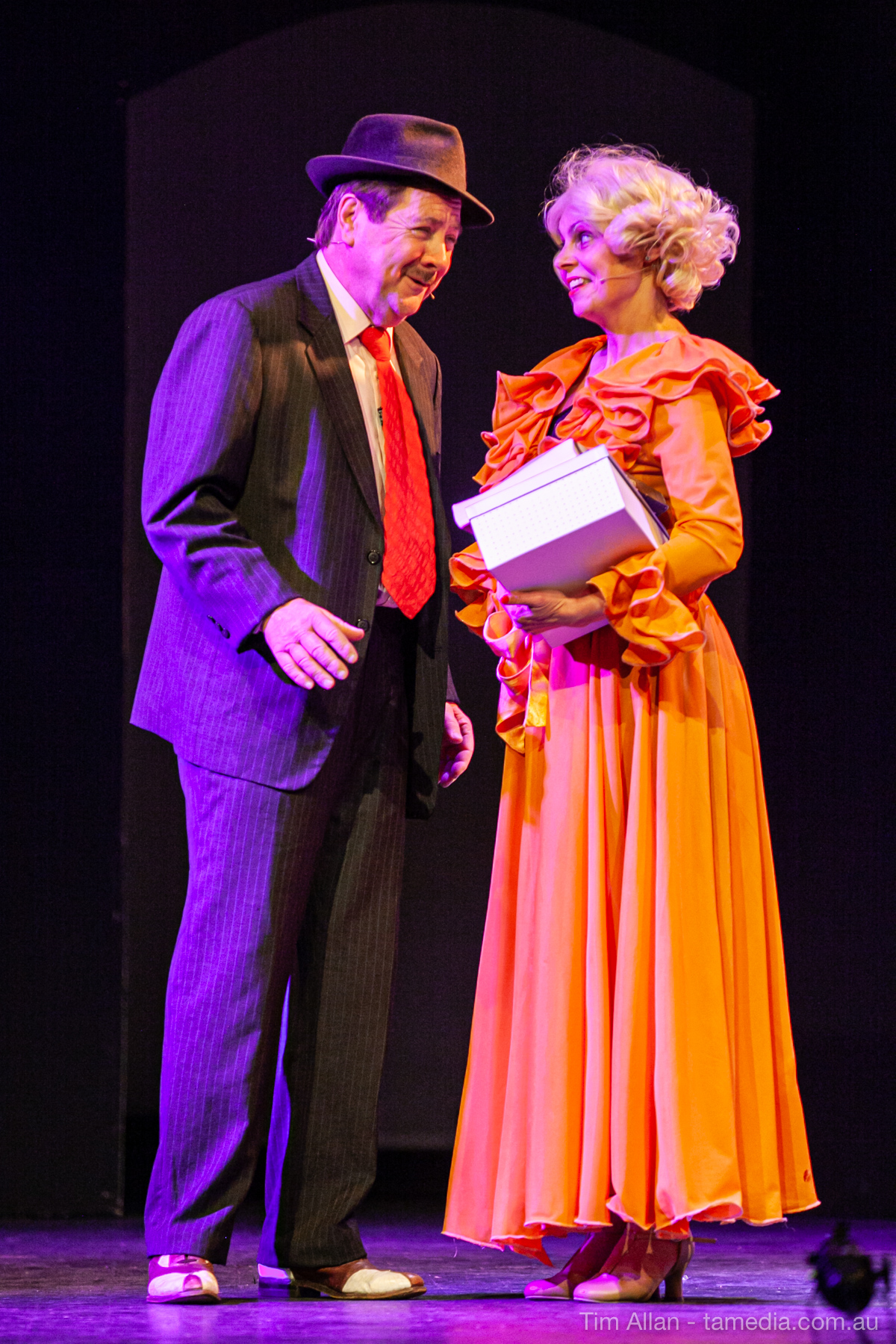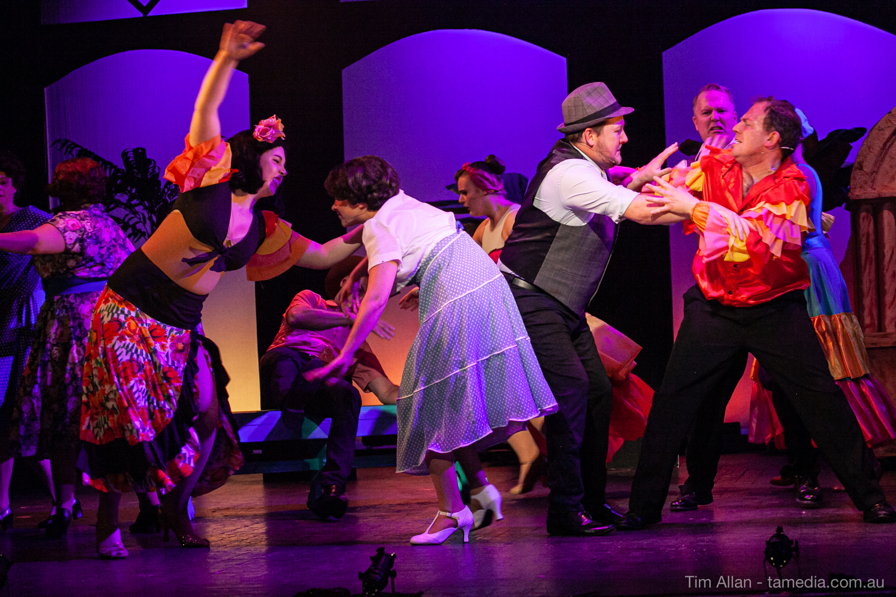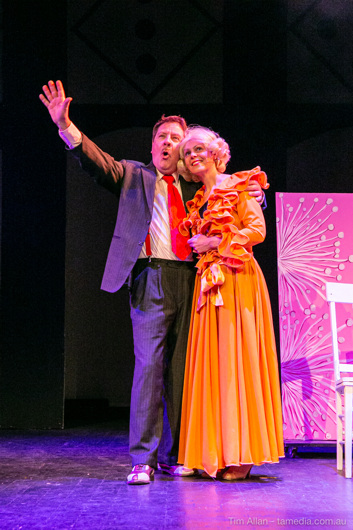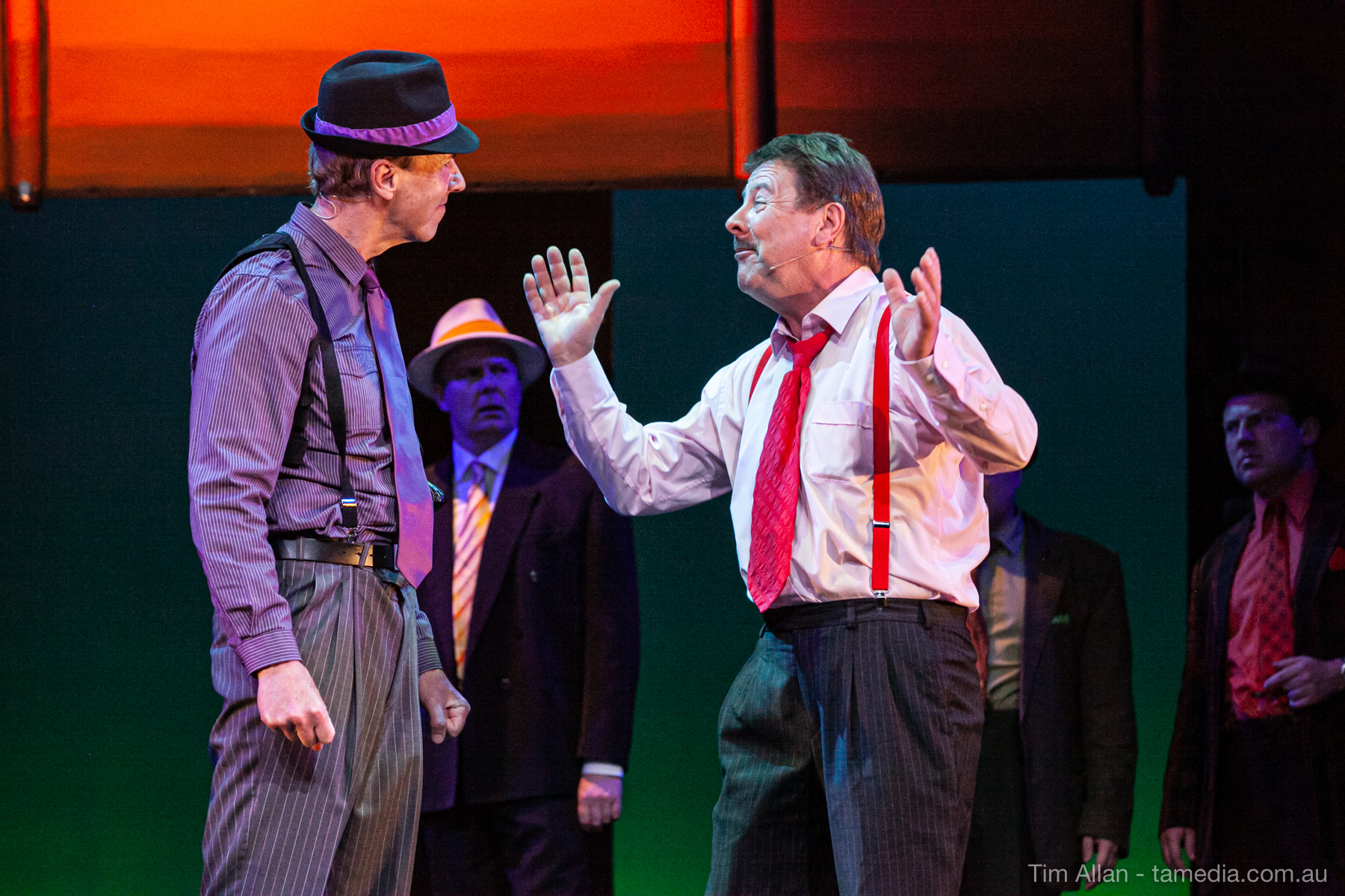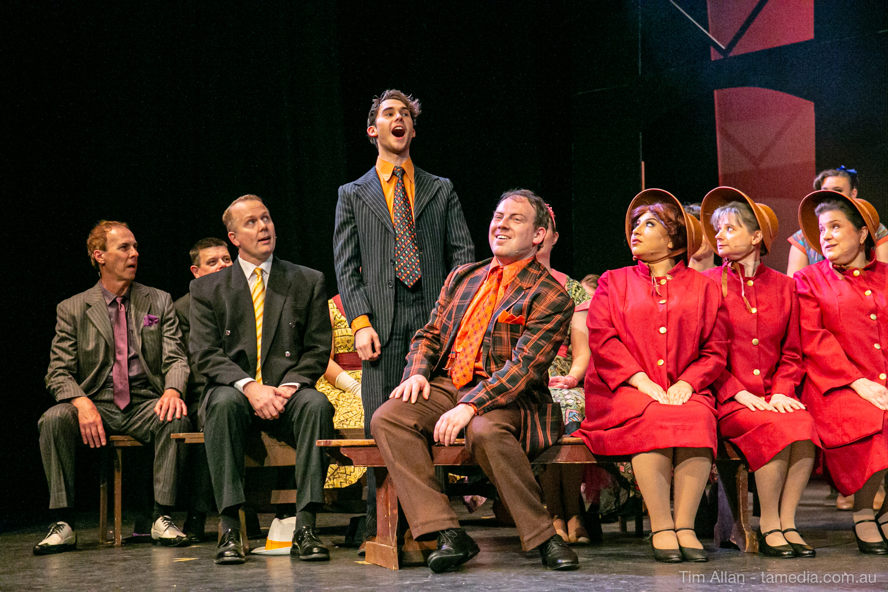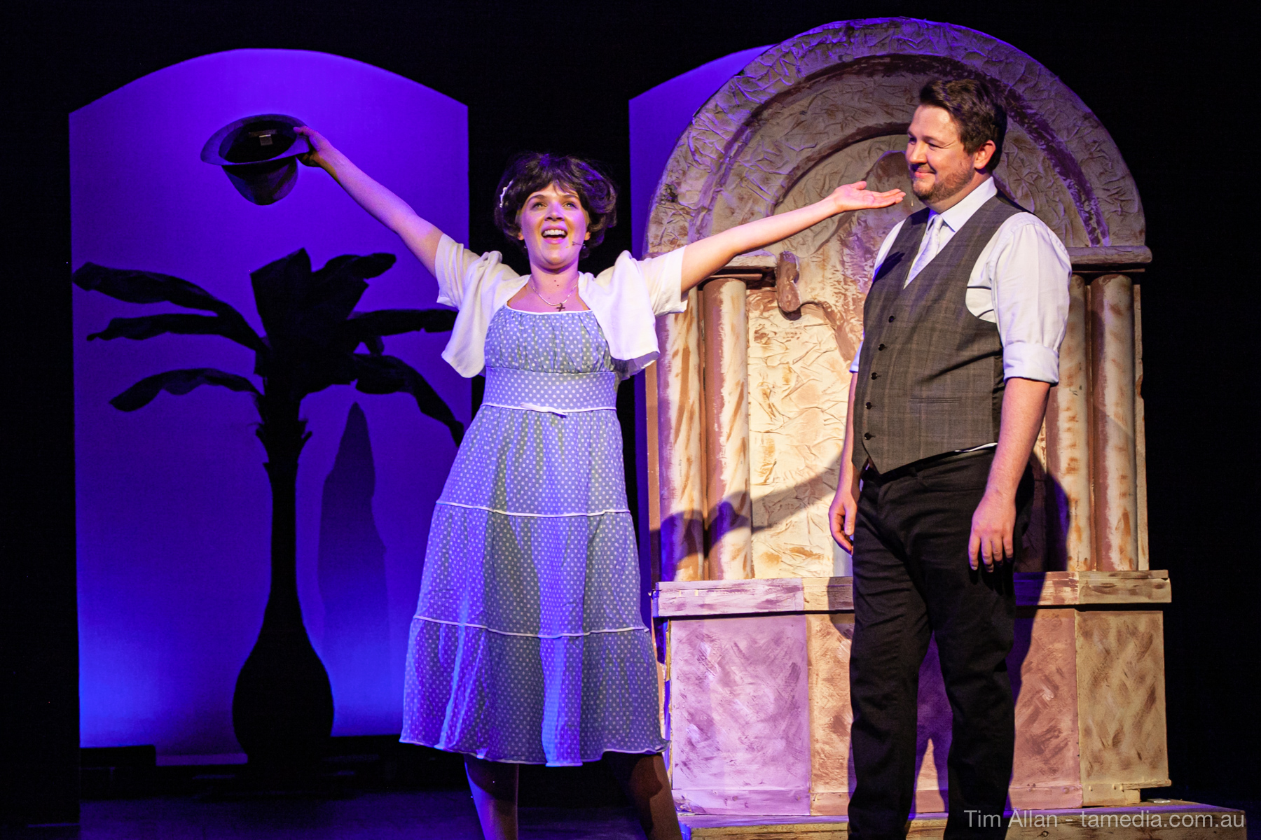 Set in the bustling Manhattan of Damon Runyon’s short stories, Guys and Dolls is a Depression era romantic comedy featuring crap games, horse races, gamblers, show girls and the evangelist members of a downtown Mission. Con-man Nathan Detroit is seeking a new location for his notorious ‘floating’ crap game, but he doesn’t have the dough he needs for a down payment. Enter Sky Masterson, a high-rolling gambler willing to take on any honest bet with a high enough reward attached. Nathan bets Sky that he can’t take the “doll”, of Nathan’s choosing, on a date to Havana, Cuba. When Sky agrees to the bet, Nathan chooses uptight Evangelist Sergeant Sarah Brown, head of Broadway’s Save-a-Soul Mission. Sky thinks he’s been duped, but he’s in for even more of a surprise when his efforts to woo Sarah are so successful that he falls in love with her himself! Meanwhile Nathan is under pressure from his long time ‘fiancee’ and night club dancer, Miss Adelaide, to settle down and get married. What are the odds?