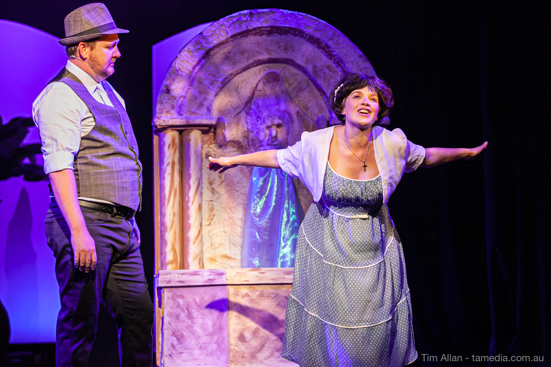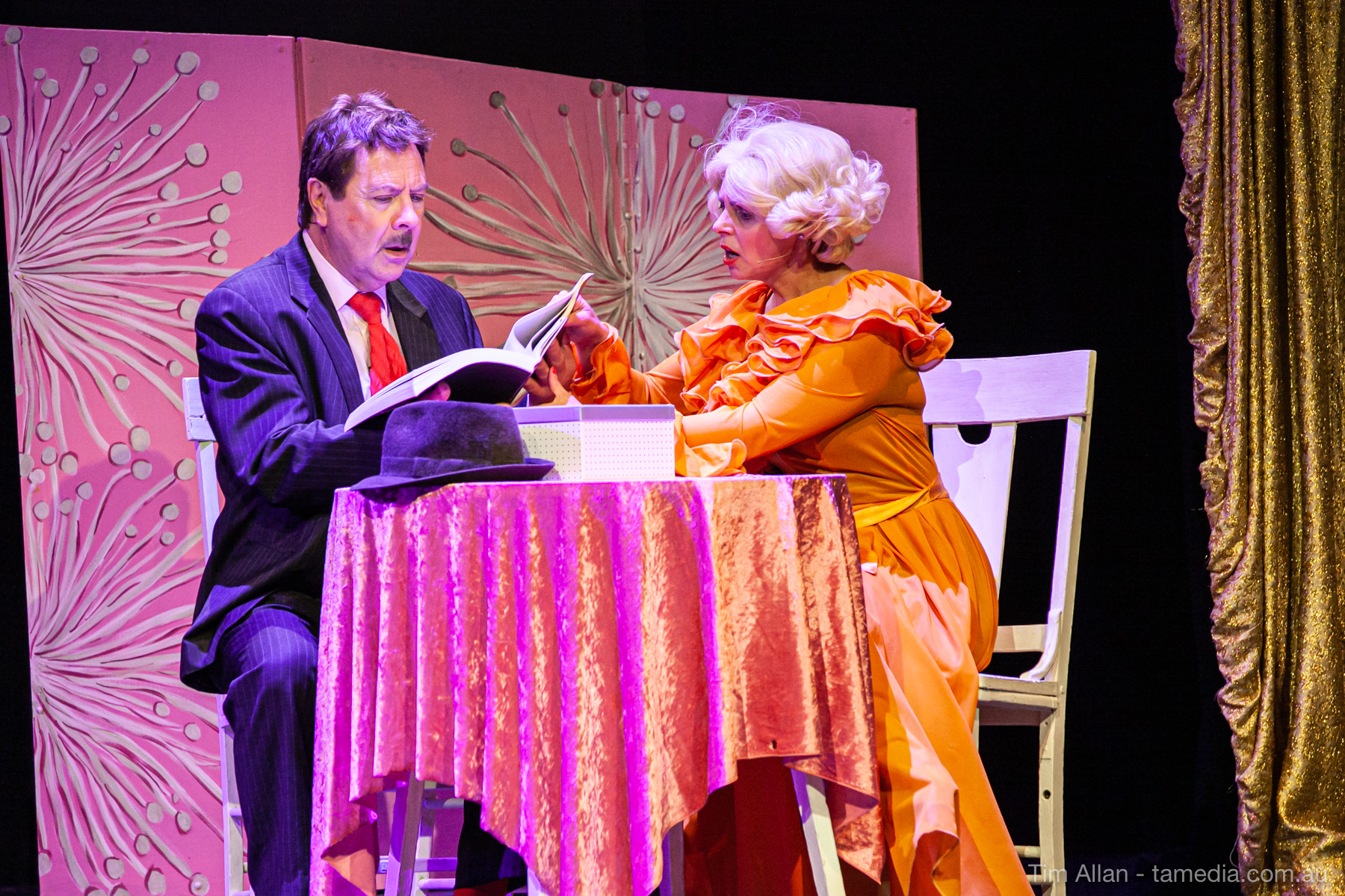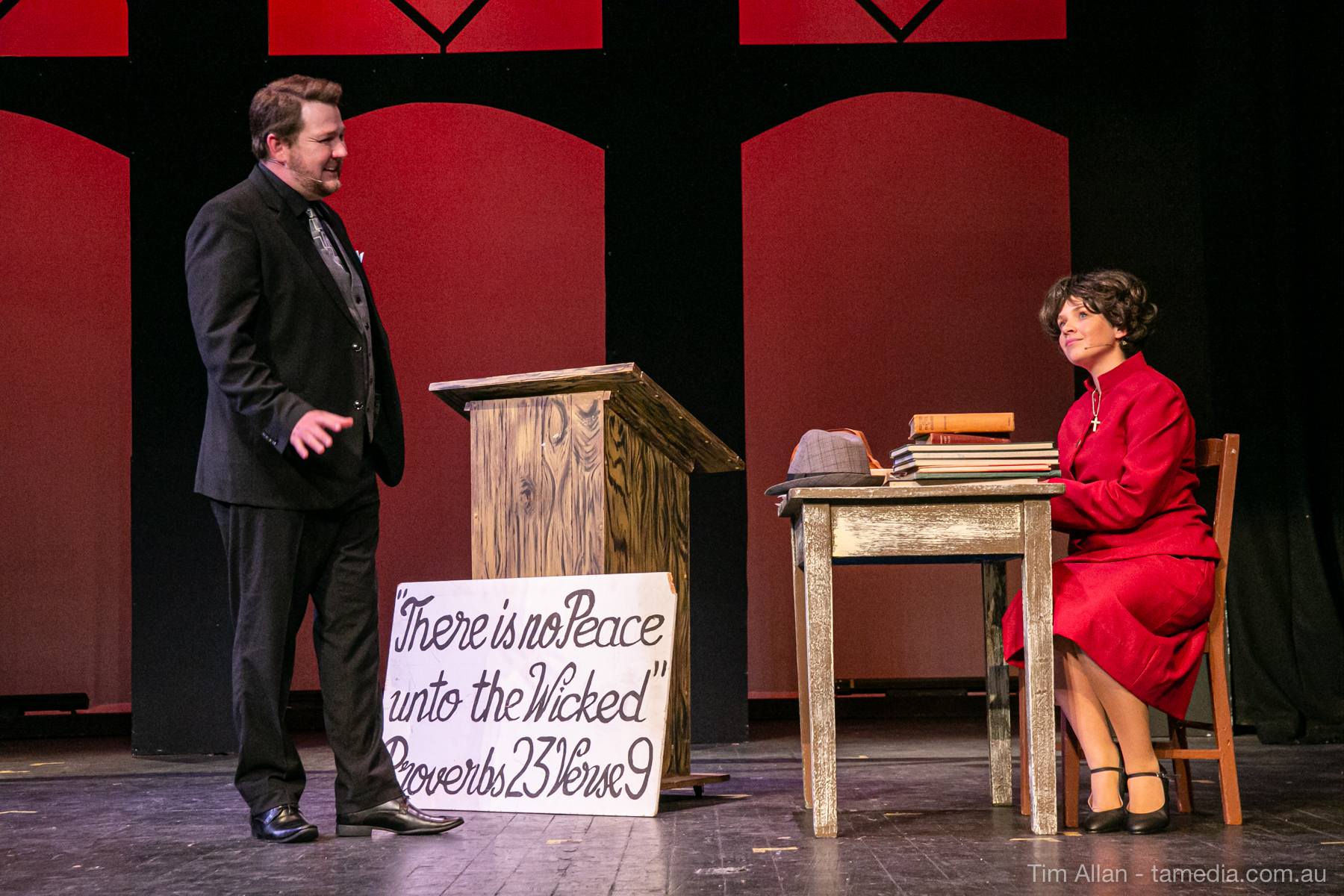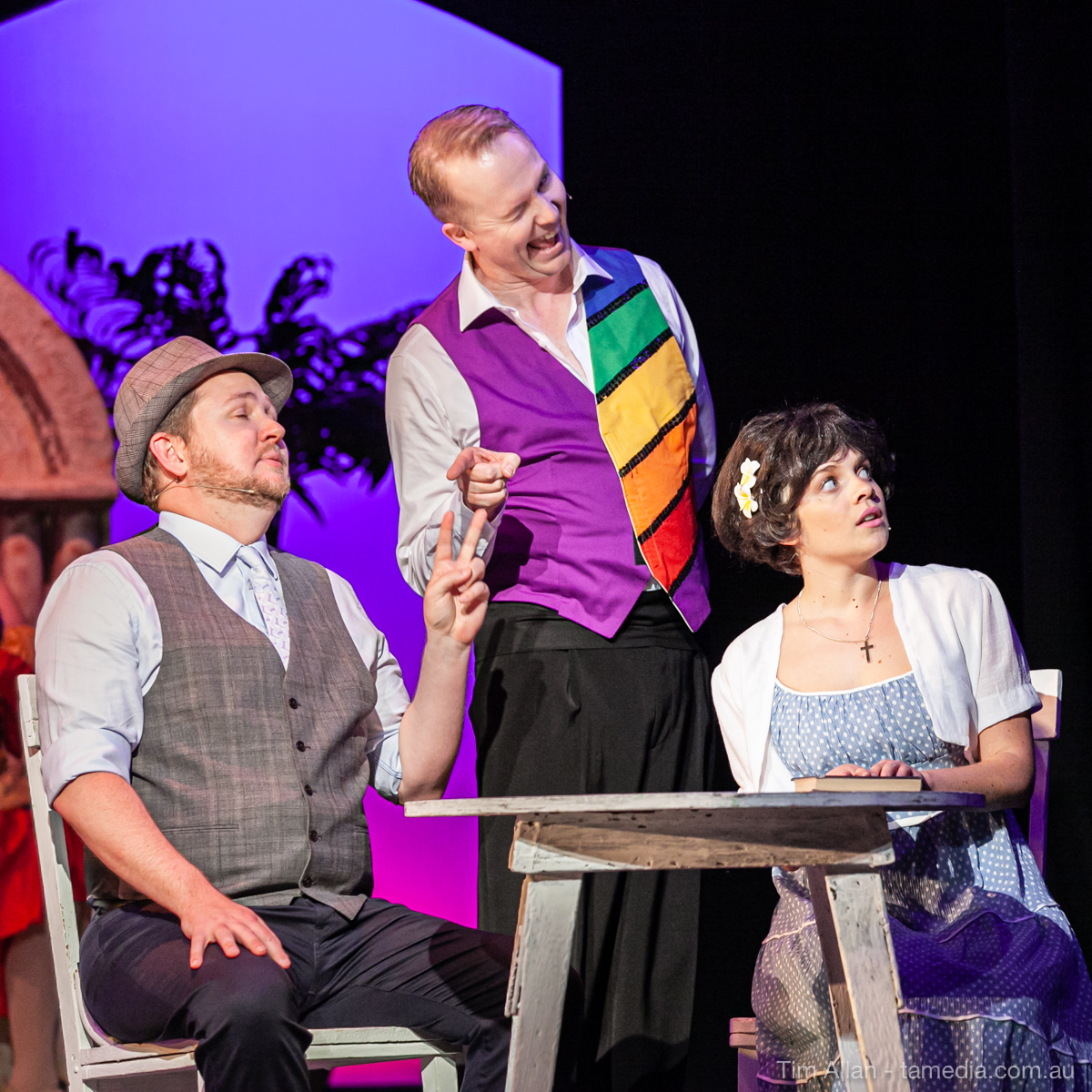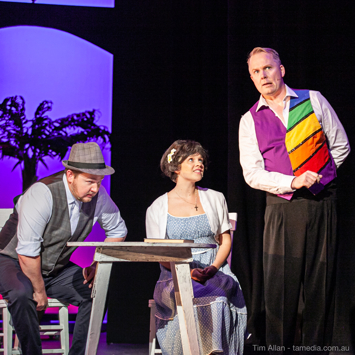 Set in the bustling Manhattan of Damon Runyon’s short stories, Guys and Dolls is a Depression era romantic comedy featuring crap games, horse races, gamblers, show girls and the evangelist members of a downtown Mission. Con-man Nathan Detroit is seeking a new location for his notorious ‘floating’ crap game, but he doesn’t have the dough he needs for a down payment. Enter Sky Masterson, a high-rolling gambler willing to take on any honest bet with a high enough reward attached. Nathan bets Sky that he can’t take the “doll”, of Nathan’s choosing, on a date to Havana, Cuba. When Sky agrees to the bet, Nathan chooses uptight Evangelist Sergeant Sarah Brown, head of Broadway’s Save-a-Soul Mission. Sky thinks he’s been duped, but he’s in for even more of a surprise when his efforts to woo Sarah are so successful that he falls in love with her himself! Meanwhile Nathan is under pressure from his long time ‘fiancee’ and night club dancer, Miss Adelaide, to settle down and get married. What are the odds?