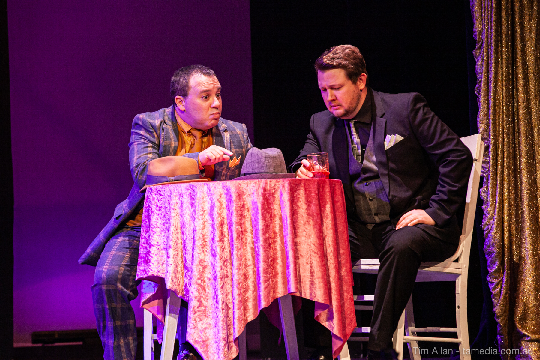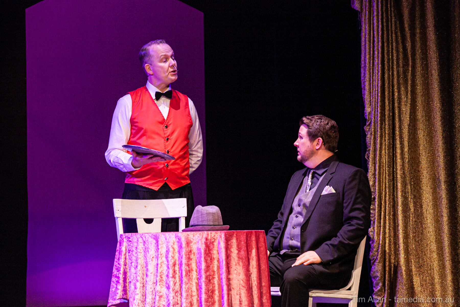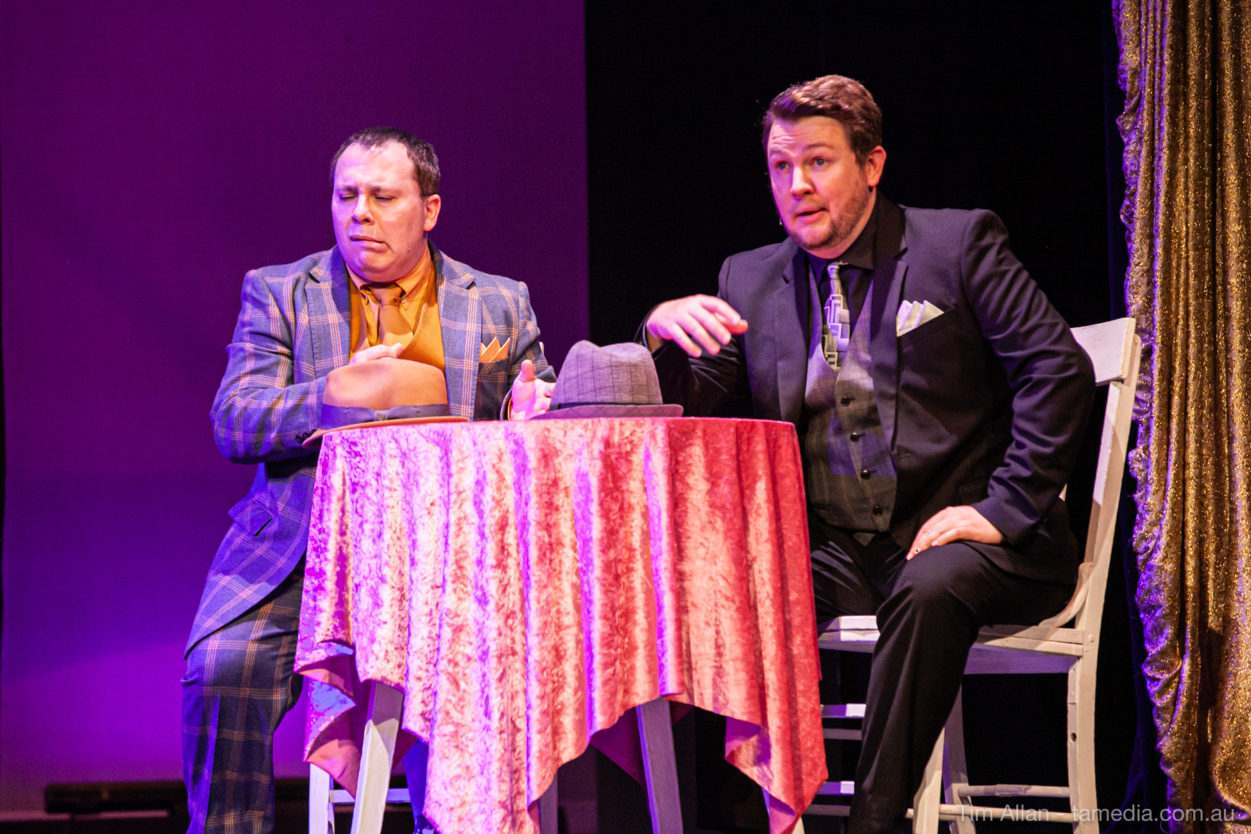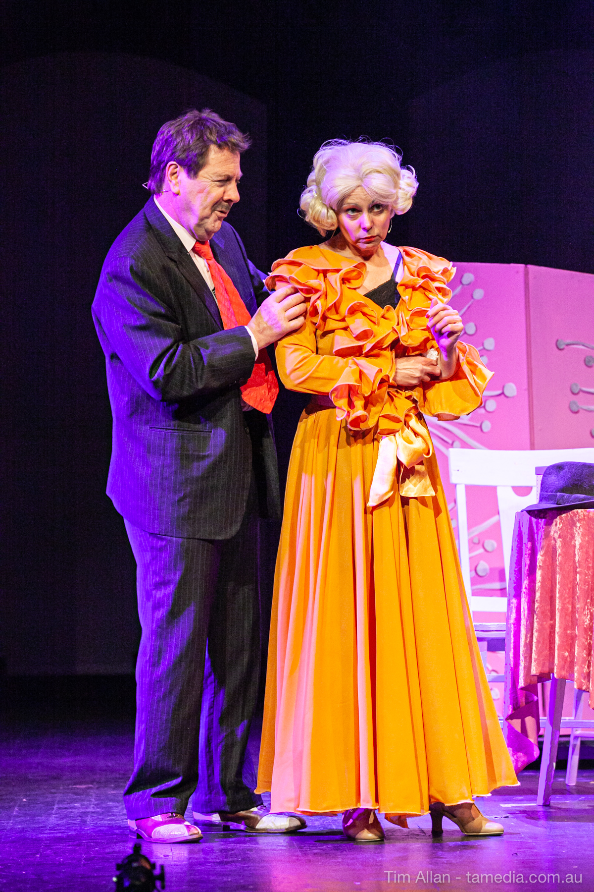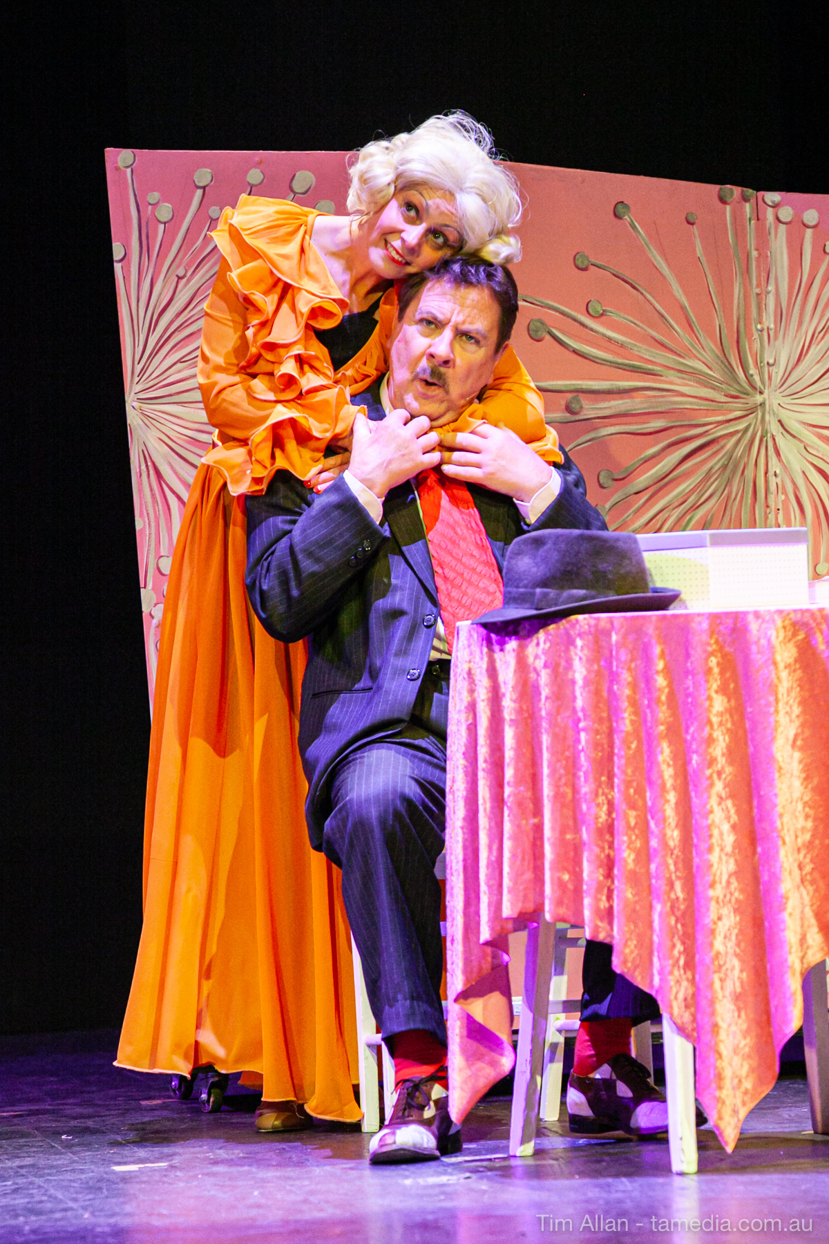 Set in the bustling Manhattan of Damon Runyon’s short stories, Guys and Dolls is a Depression era romantic comedy featuring crap games, horse races, gamblers, show girls and the evangelist members of a downtown Mission. Con-man Nathan Detroit is seeking a new location for his notorious ‘floating’ crap game, but he doesn’t have the dough he needs for a down payment. Enter Sky Masterson, a high-rolling gambler willing to take on any honest bet with a high enough reward attached. Nathan bets Sky that he can’t take the “doll”, of Nathan’s choosing, on a date to Havana, Cuba. When Sky agrees to the bet, Nathan chooses uptight Evangelist Sergeant Sarah Brown, head of Broadway’s Save-a-Soul Mission. Sky thinks he’s been duped, but he’s in for even more of a surprise when his efforts to woo Sarah are so successful that he falls in love with her himself! Meanwhile Nathan is under pressure from his long time ‘fiancee’ and night club dancer, Miss Adelaide, to settle down and get married. What are the odds?