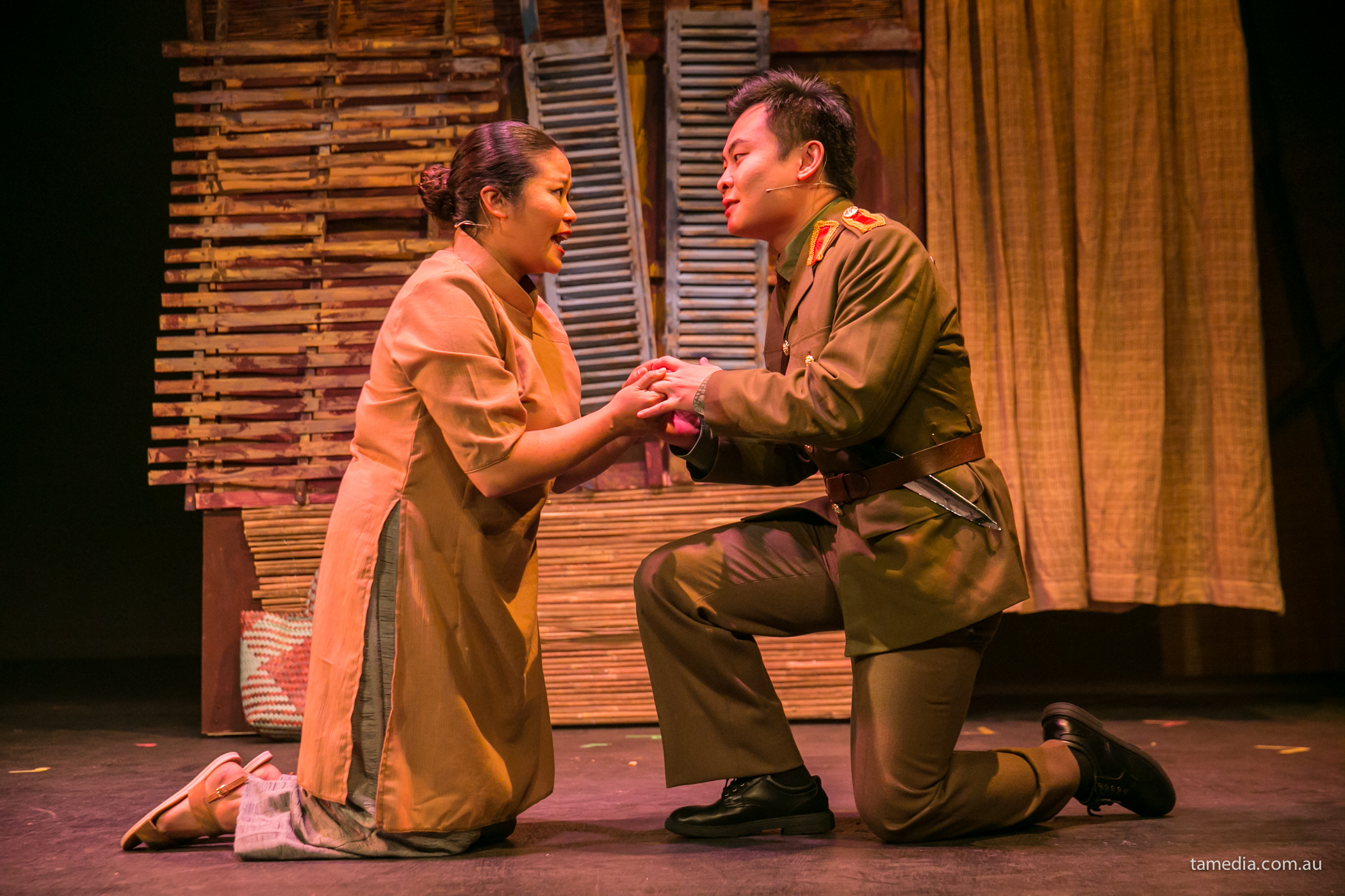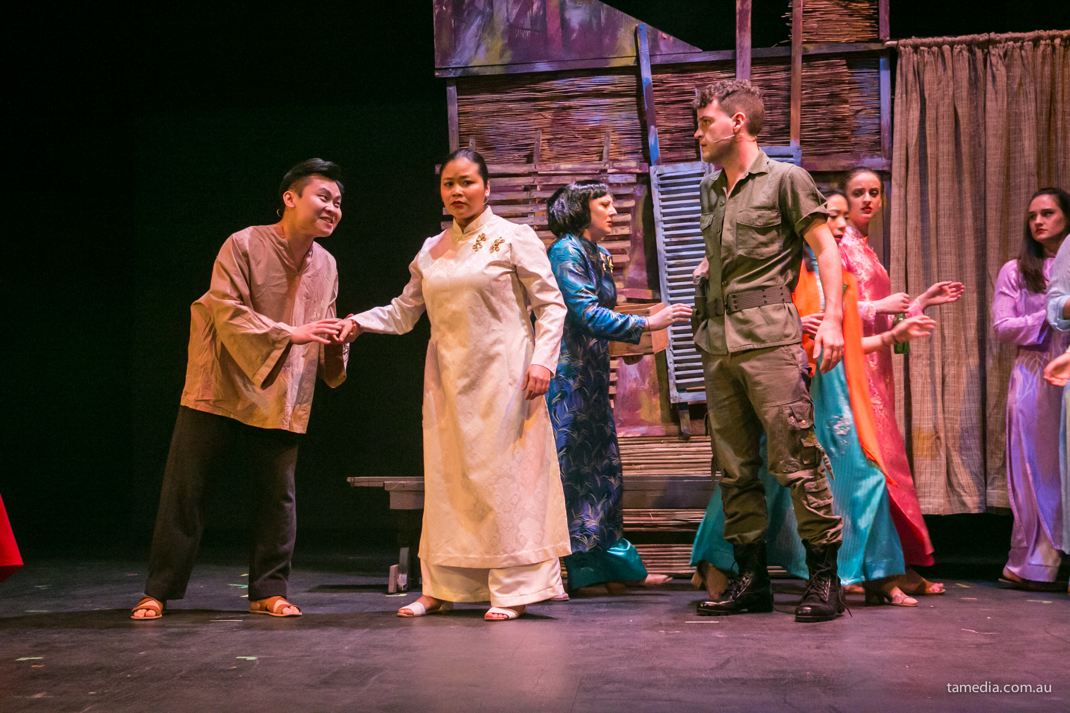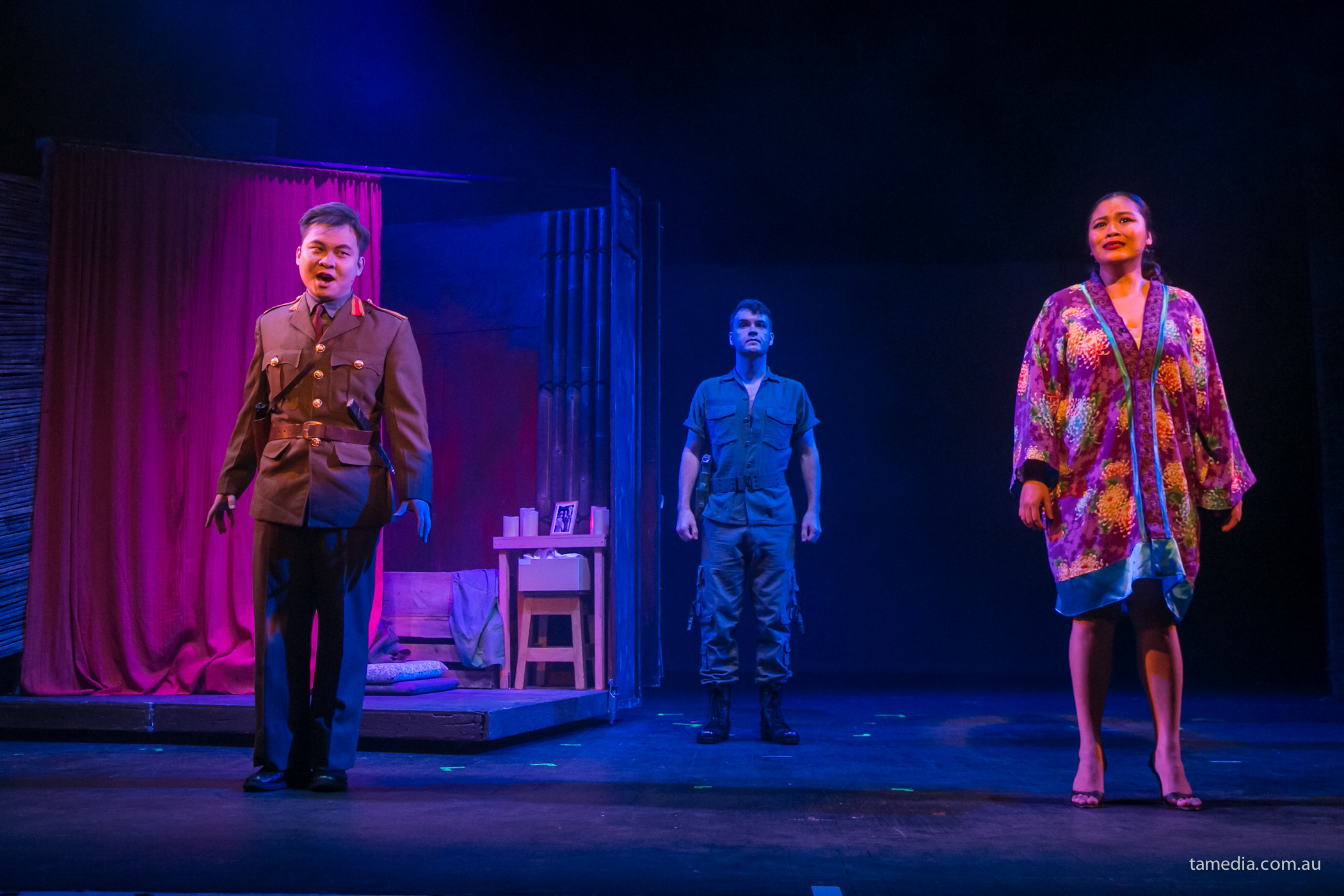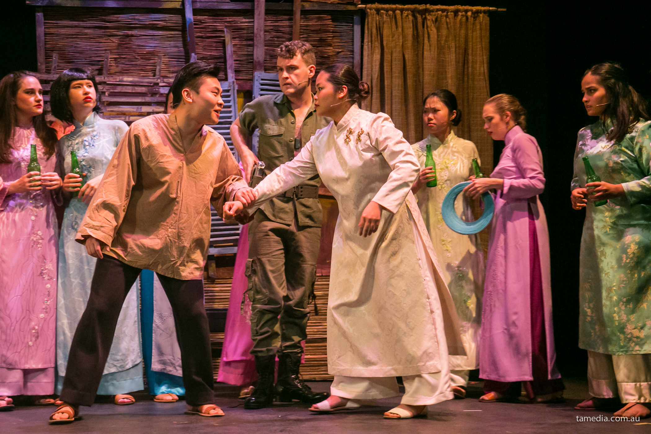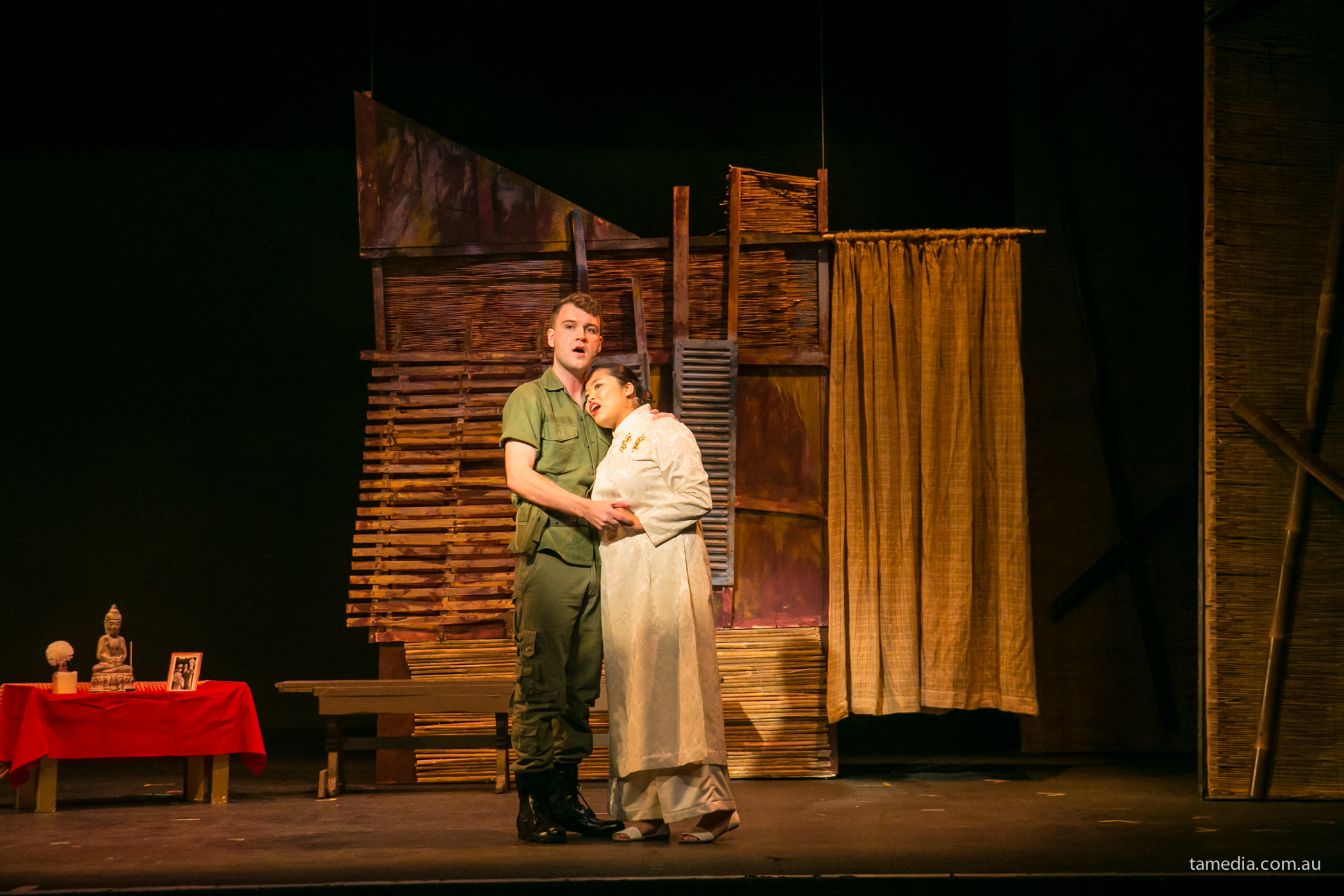 Miss Saigon is a stage musical by Claude-Michel Schönberg and Alain Boublil, with lyrics by Boublil and Richard Maltby Jr. It is based on Giacomo Puccini's 1904 opera Madama Butterfly, and similarly tells the tragic tale of a doomed romance involving an Asian woman abandoned by her American lover. The setting of the plot is relocated to 1970s Saigon during the Vietnam War, and Madame Butterfly's story of marriage between an American lieutenant and a geisha is replaced by a romance between a United States Marine and a seventeen-year-old South Vietnamese bargirl.