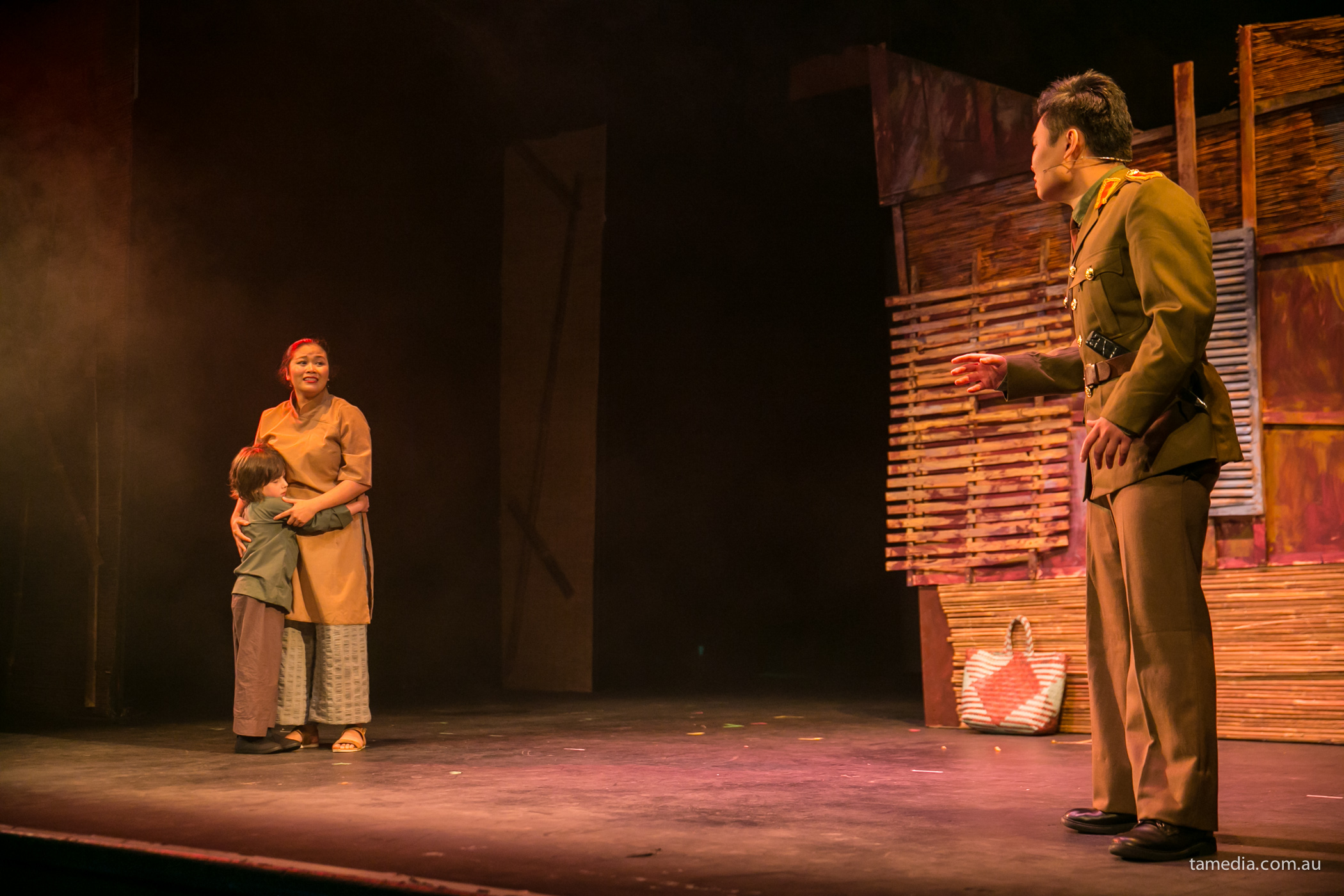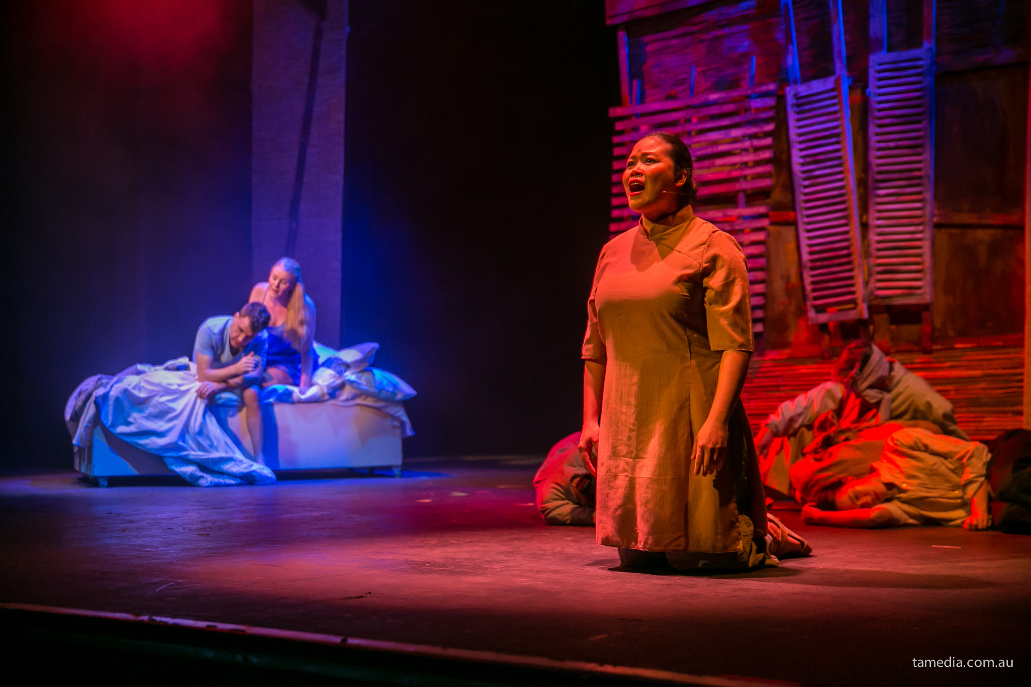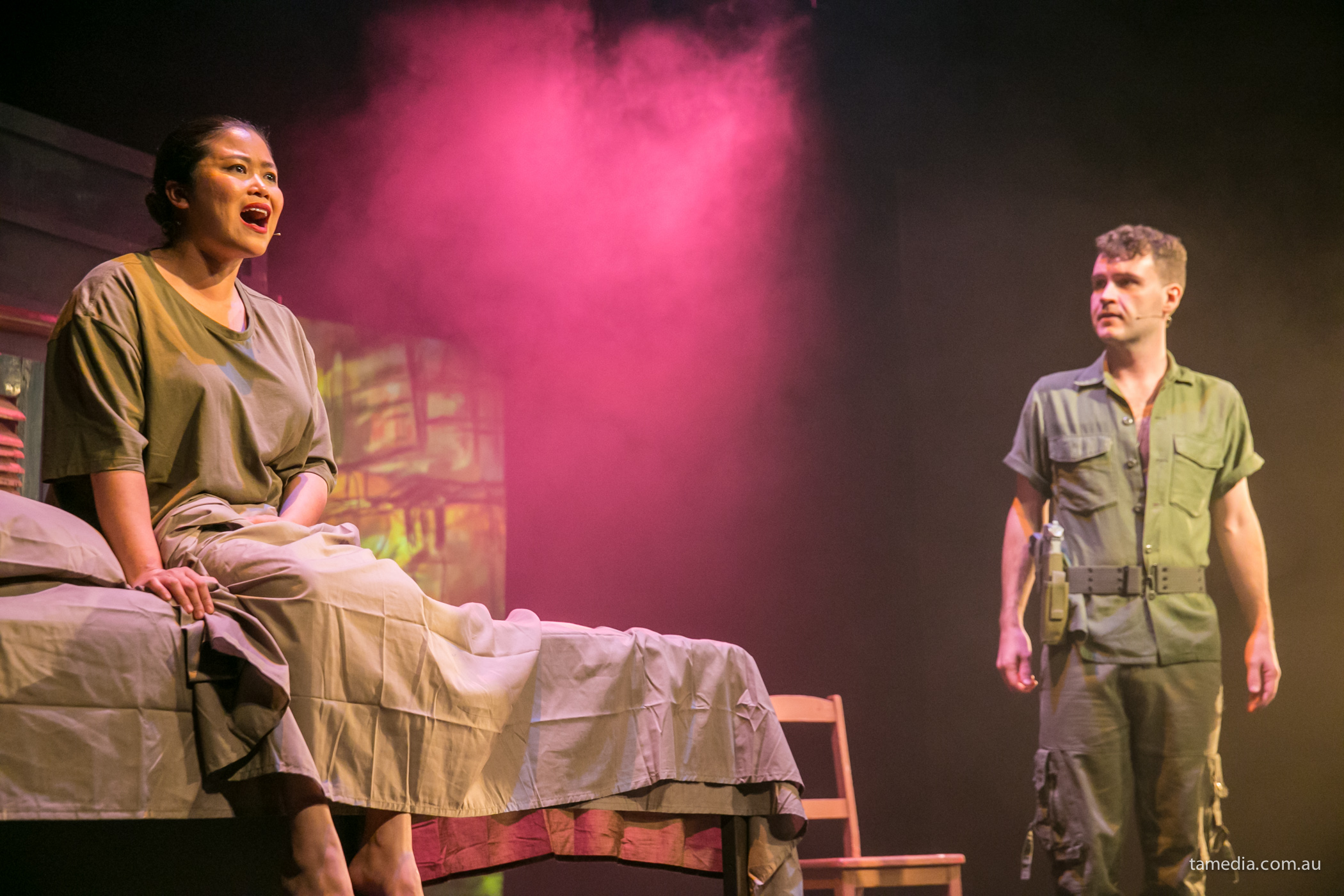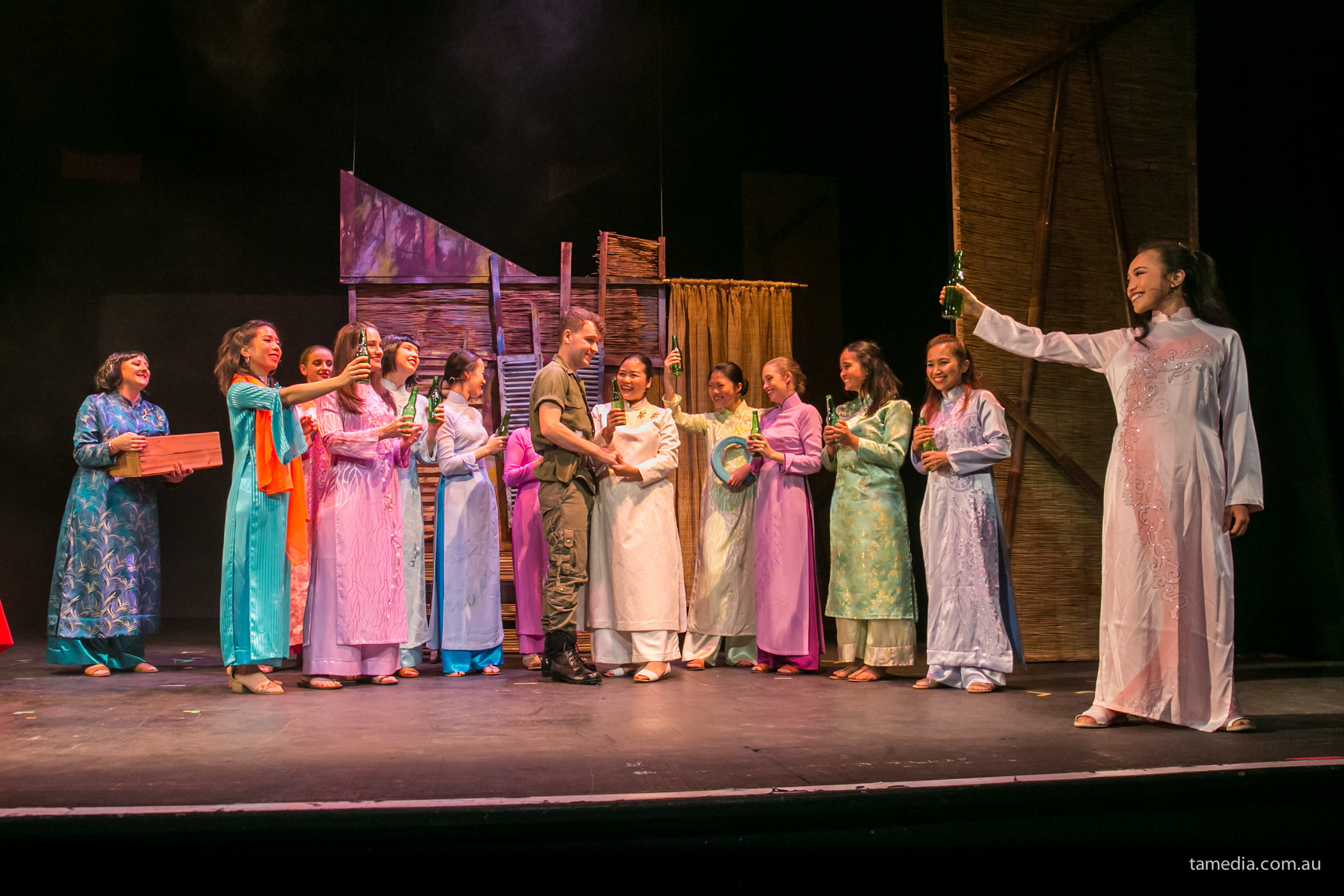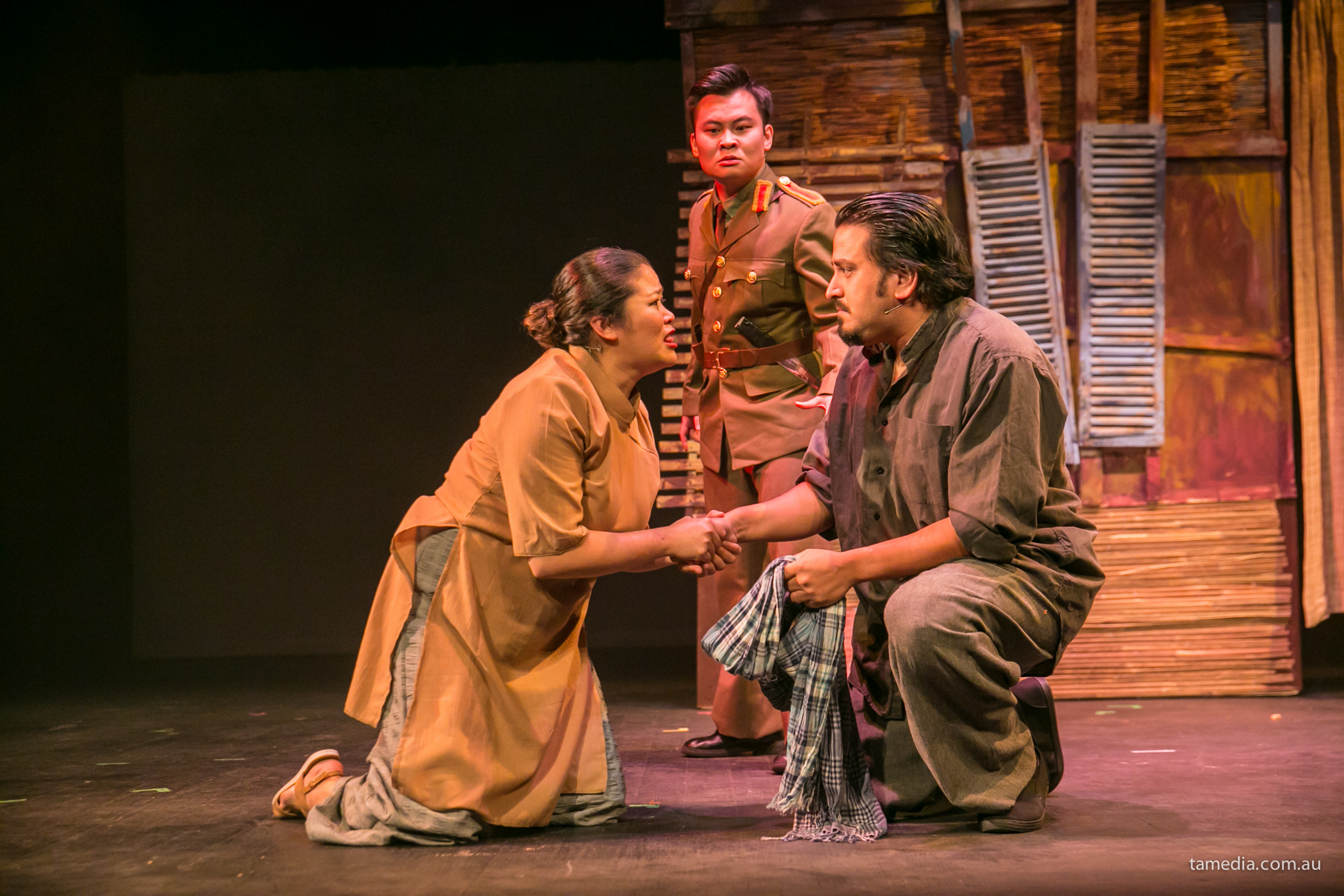 Miss Saigon is a stage musical by Claude-Michel Schönberg and Alain Boublil, with lyrics by Boublil and Richard Maltby Jr. It is based on Giacomo Puccini's 1904 opera Madama Butterfly, and similarly tells the tragic tale of a doomed romance involving an Asian woman abandoned by her American lover. The setting of the plot is relocated to 1970s Saigon during the Vietnam War, and Madame Butterfly's story of marriage between an American lieutenant and a geisha is replaced by a romance between a United States Marine and a seventeen-year-old South Vietnamese bargirl.