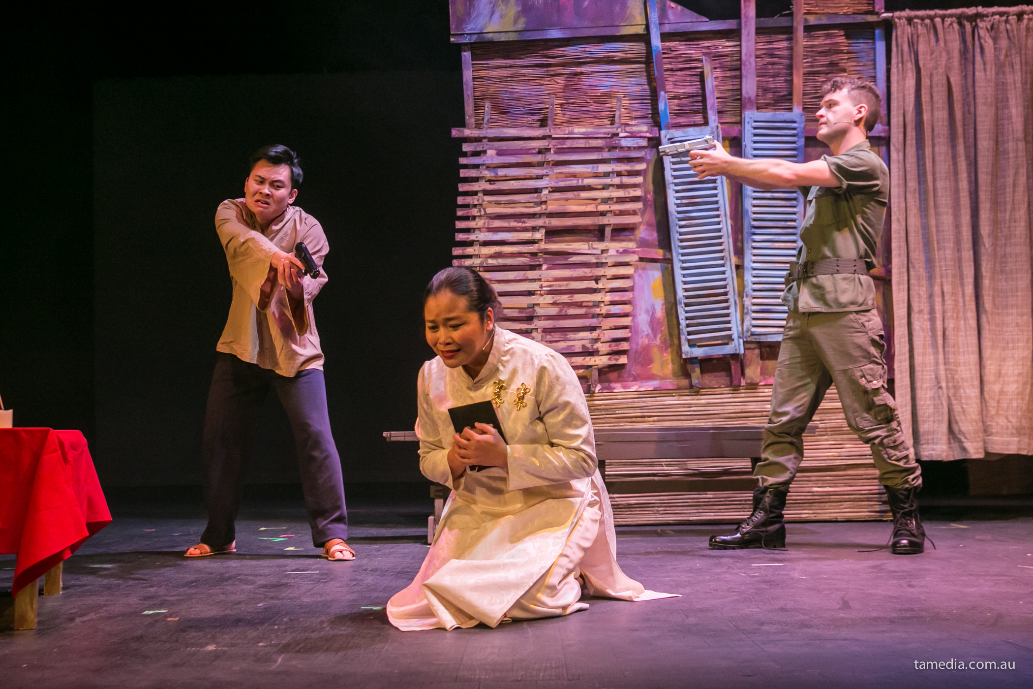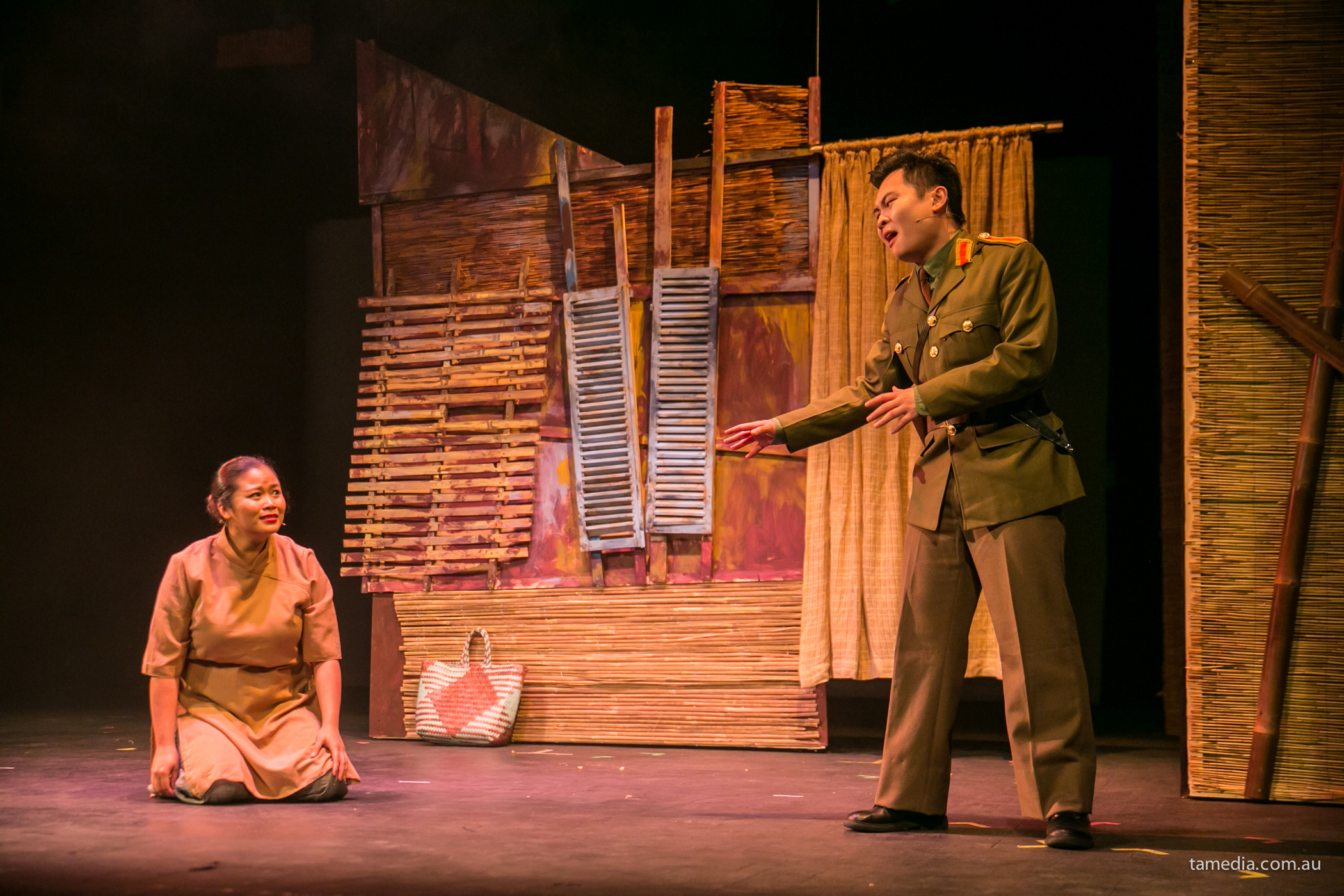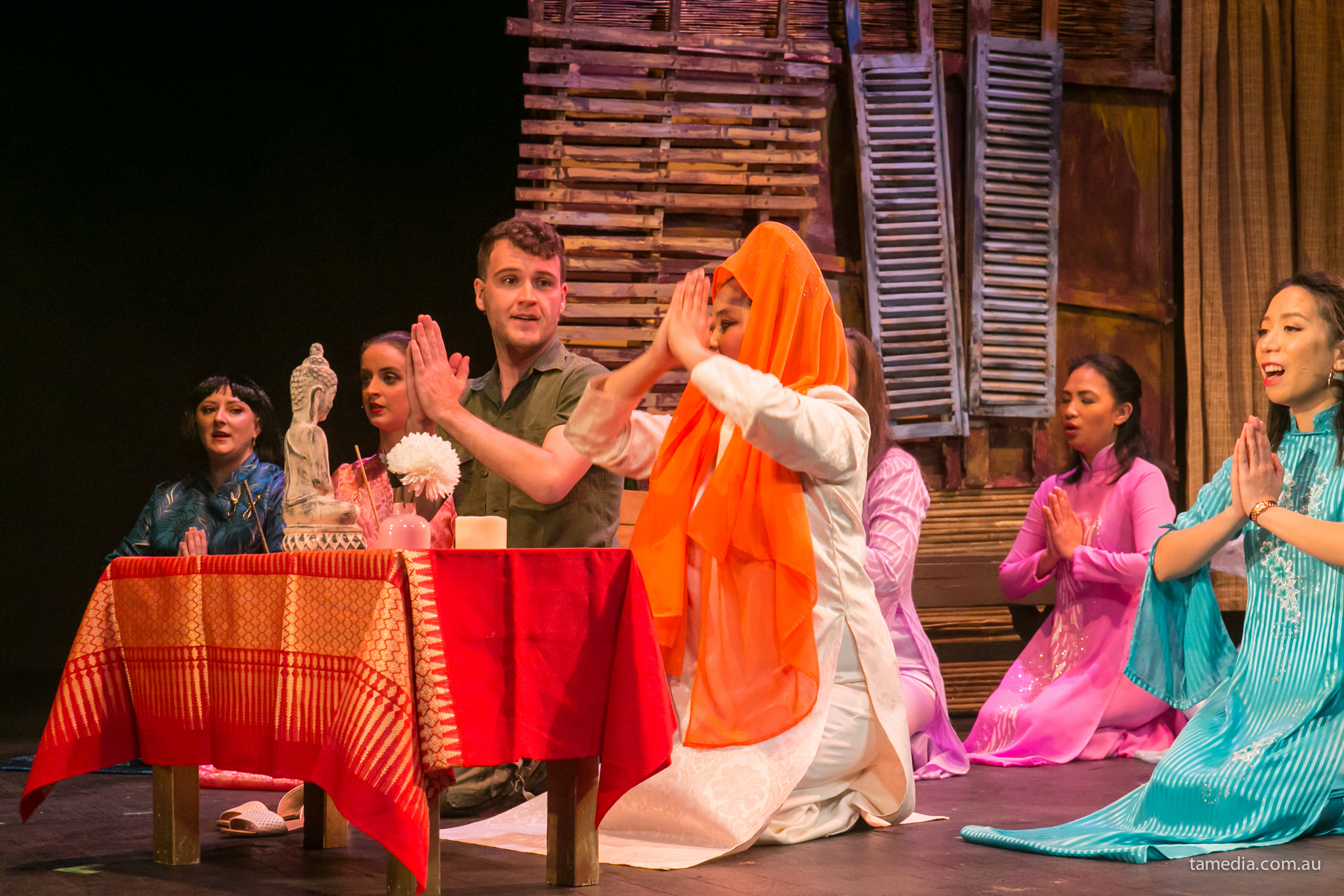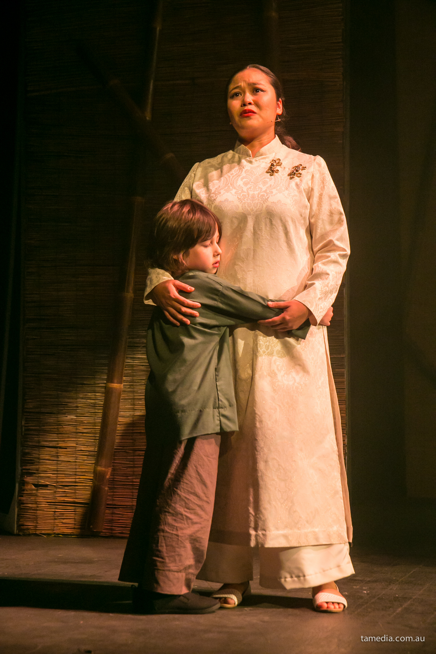 Miss Saigon is a stage musical by Claude-Michel Schönberg and Alain Boublil, with lyrics by Boublil and Richard Maltby Jr. It is based on Giacomo Puccini's 1904 opera Madama Butterfly, and similarly tells the tragic tale of a doomed romance involving an Asian woman abandoned by her American lover. The setting of the plot is relocated to 1970s Saigon during the Vietnam War, and Madame Butterfly's story of marriage between an American lieutenant and a geisha is replaced by a romance between a United States Marine and a seventeen-year-old South Vietnamese bargirl.