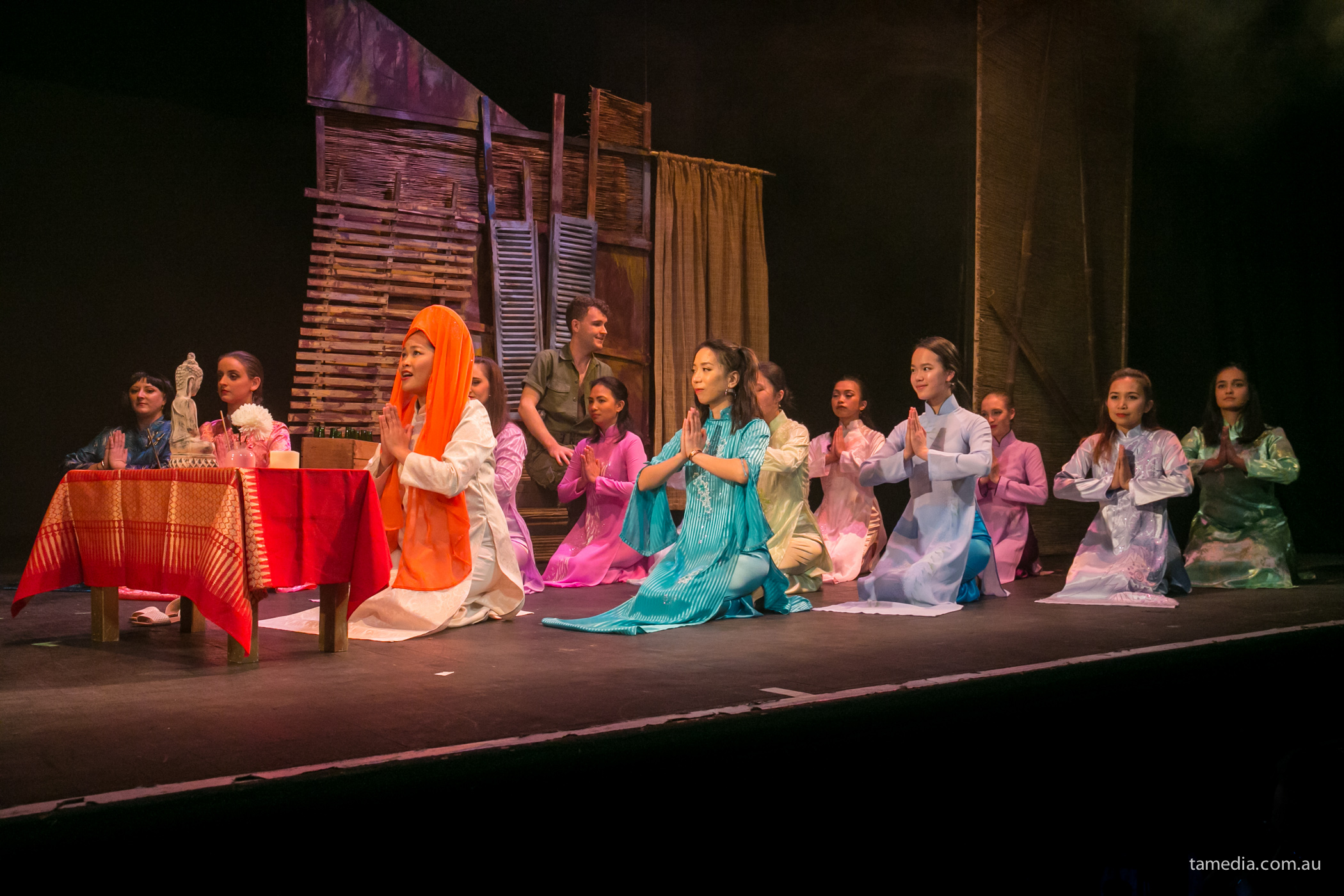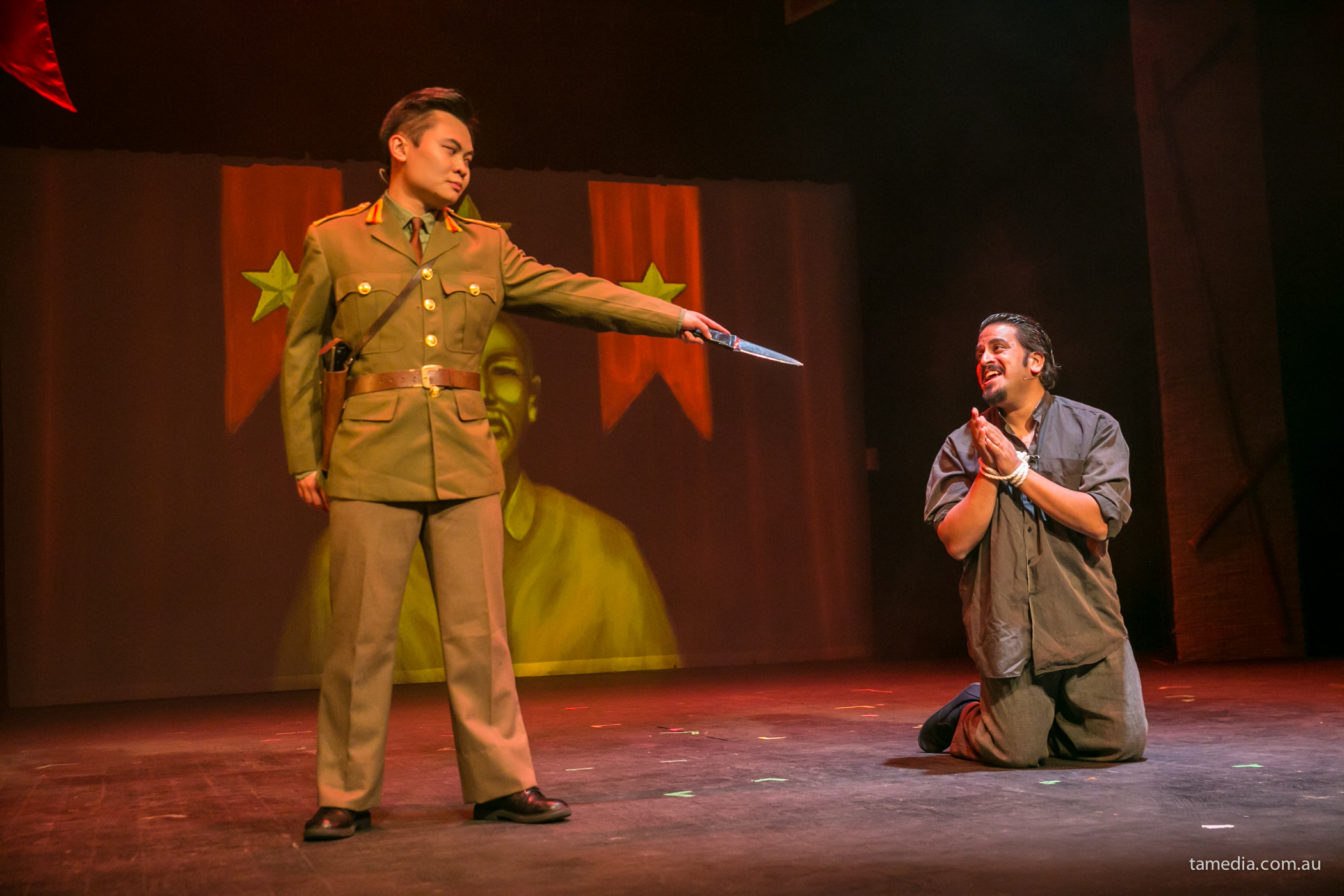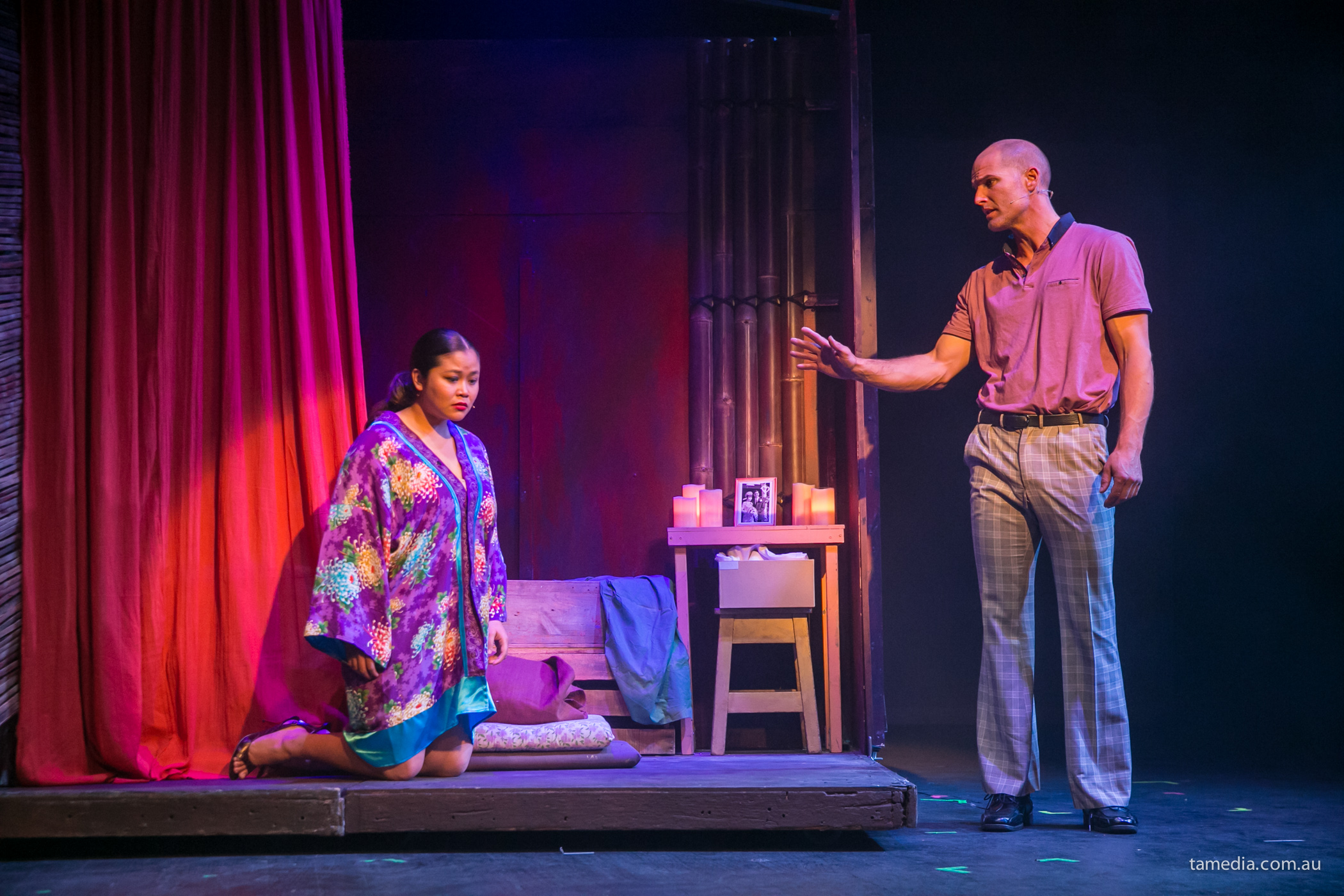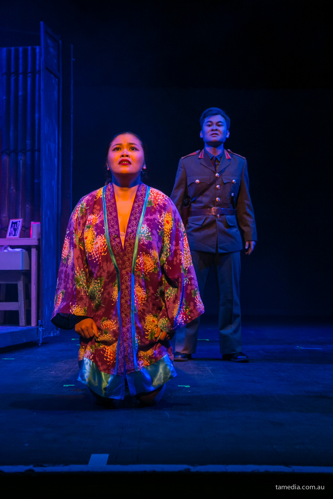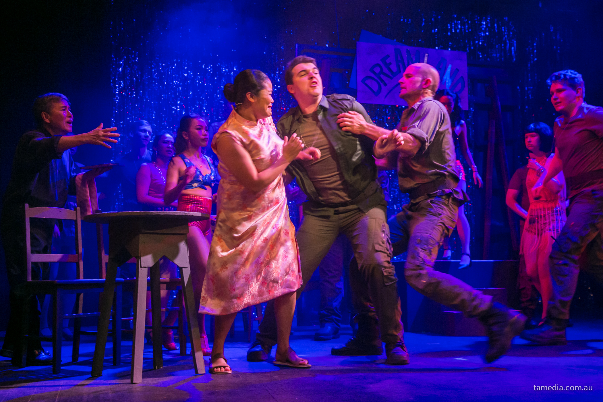 Miss Saigon is a stage musical by Claude-Michel Schönberg and Alain Boublil, with lyrics by Boublil and Richard Maltby Jr. It is based on Giacomo Puccini's 1904 opera Madama Butterfly, and similarly tells the tragic tale of a doomed romance involving an Asian woman abandoned by her American lover. The setting of the plot is relocated to 1970s Saigon during the Vietnam War, and Madame Butterfly's story of marriage between an American lieutenant and a geisha is replaced by a romance between a United States Marine and a seventeen-year-old South Vietnamese bargirl.
