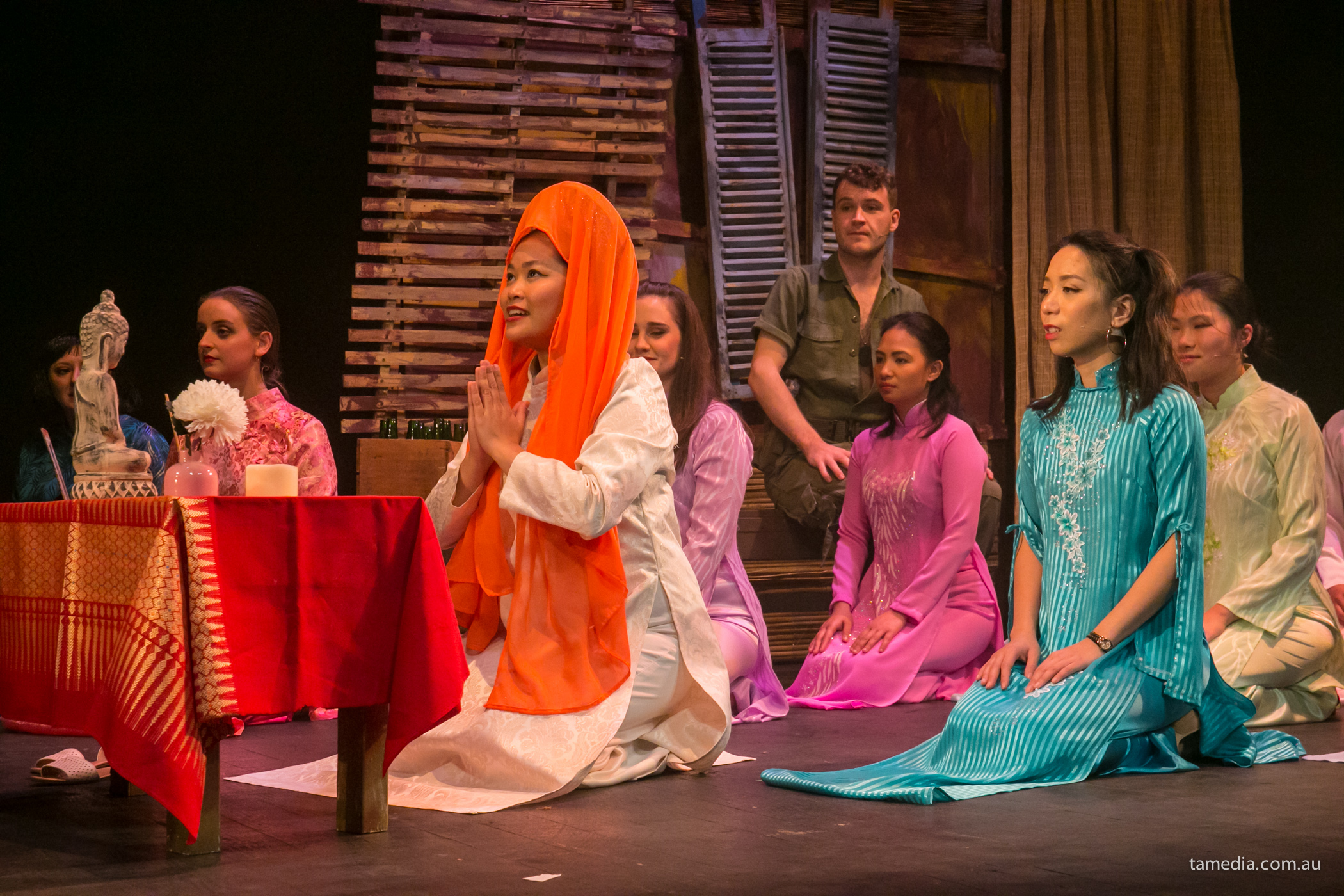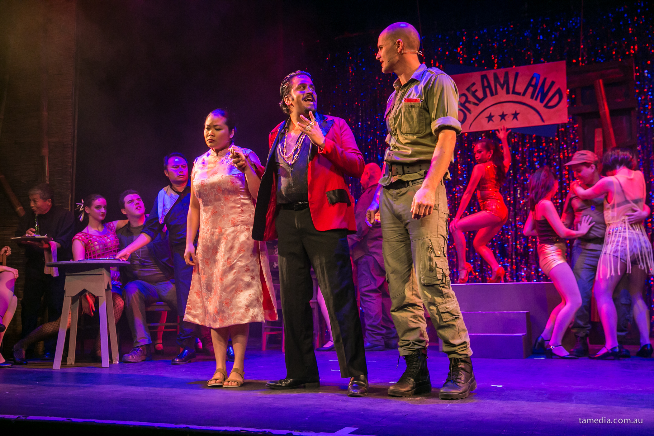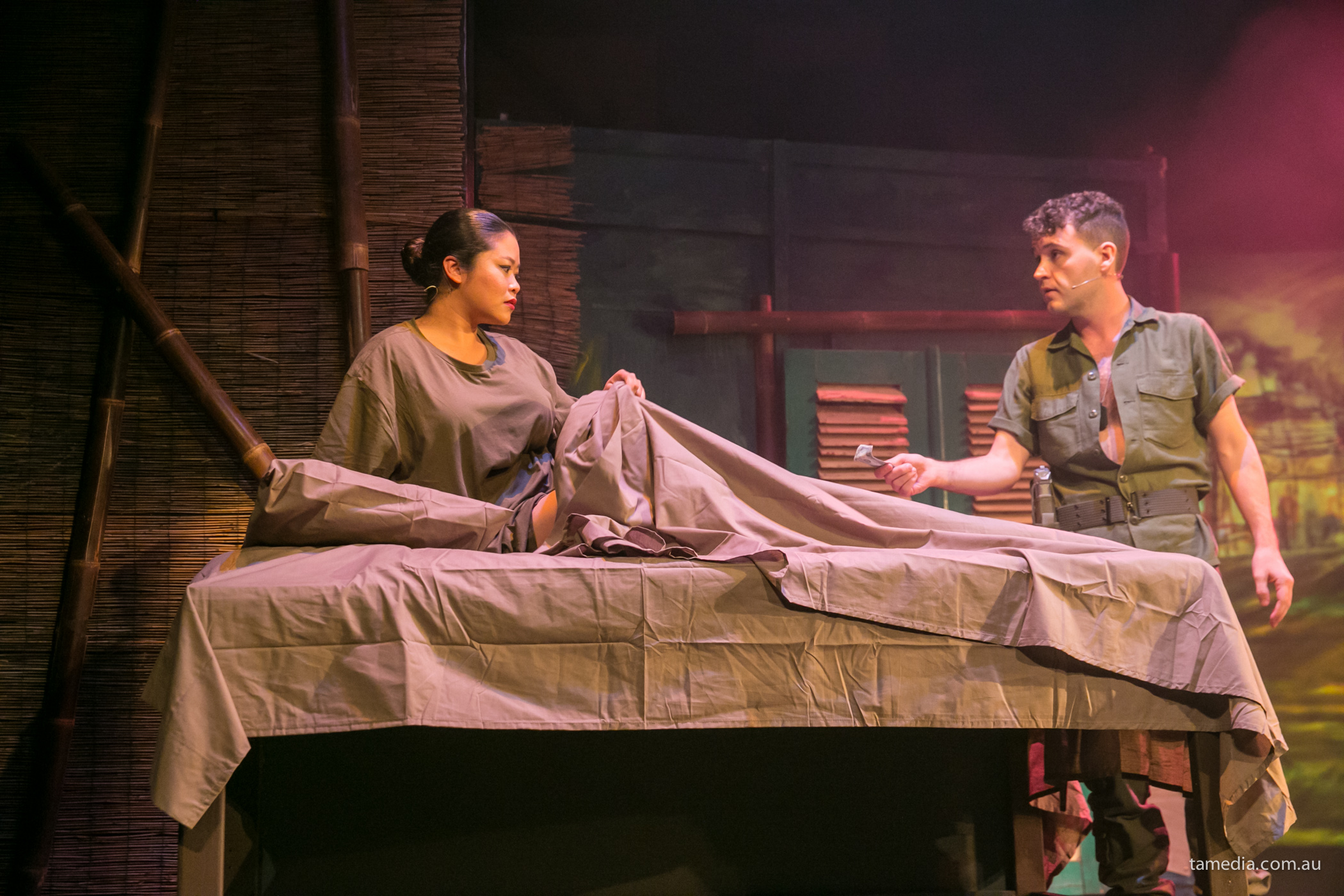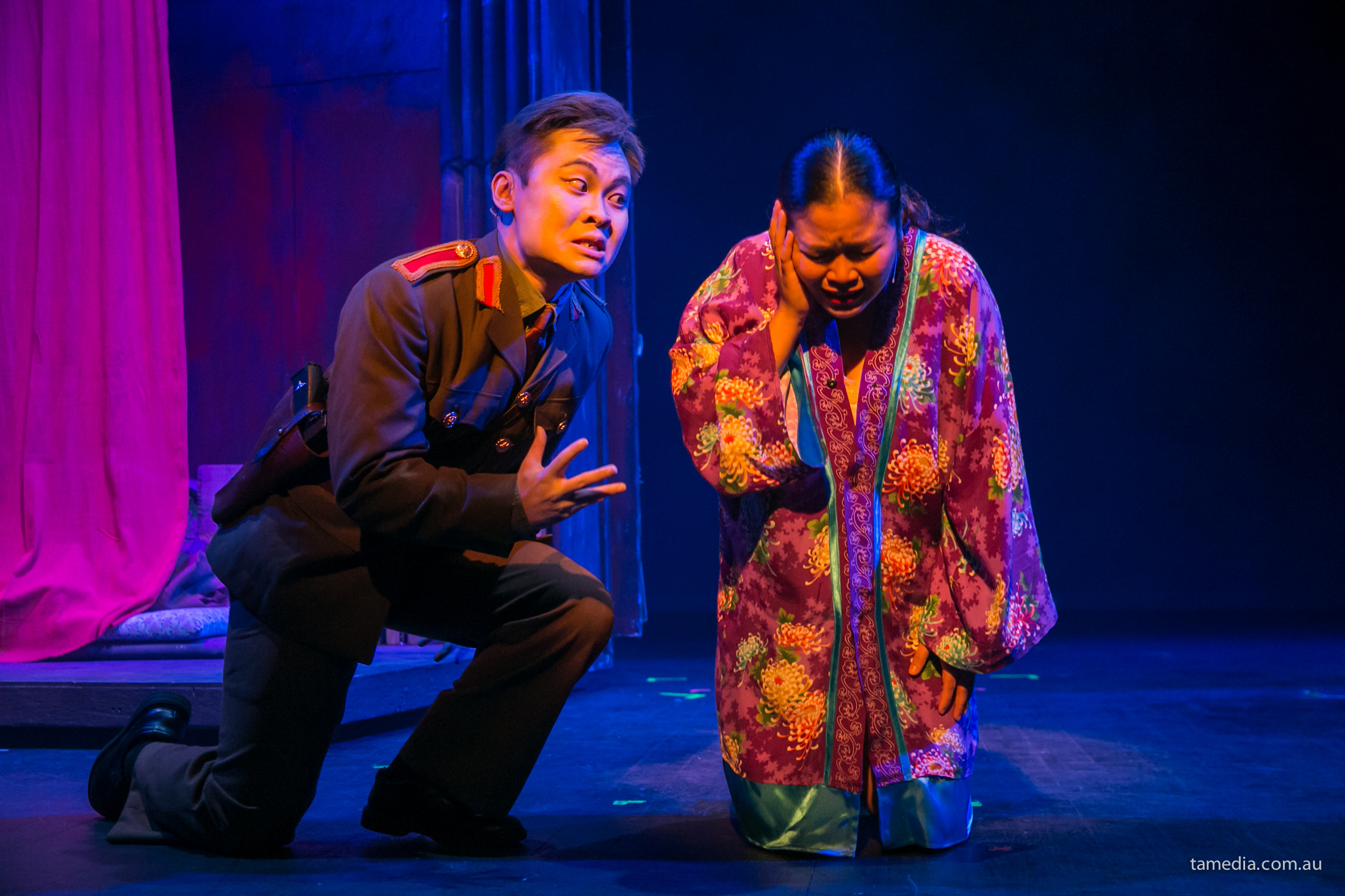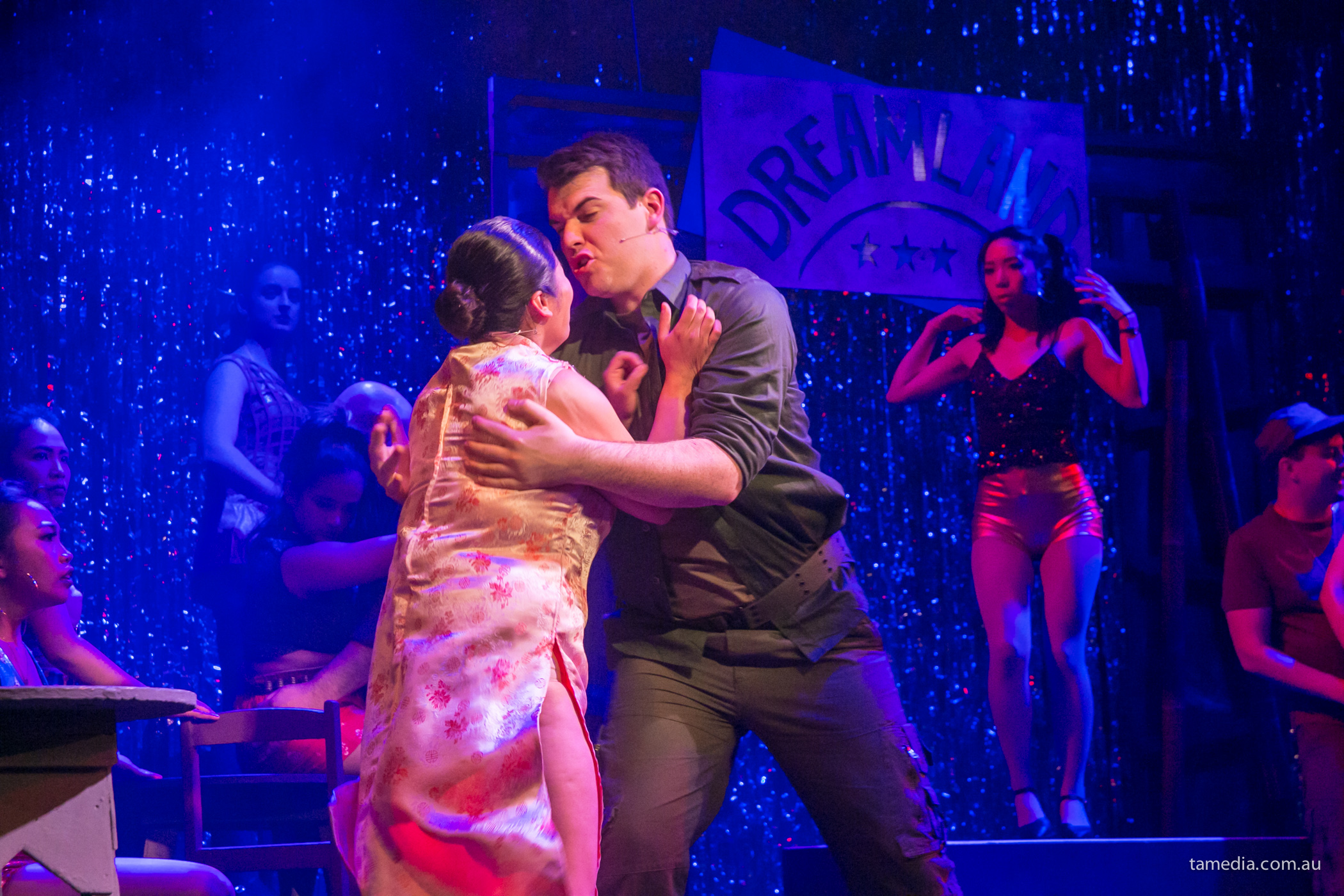 Miss Saigon is a stage musical by Claude-Michel Schönberg and Alain Boublil, with lyrics by Boublil and Richard Maltby Jr. It is based on Giacomo Puccini's 1904 opera Madama Butterfly, and similarly tells the tragic tale of a doomed romance involving an Asian woman abandoned by her American lover. The setting of the plot is relocated to 1970s Saigon during the Vietnam War, and Madame Butterfly's story of marriage between an American lieutenant and a geisha is replaced by a romance between a United States Marine and a seventeen-year-old South Vietnamese bargirl.