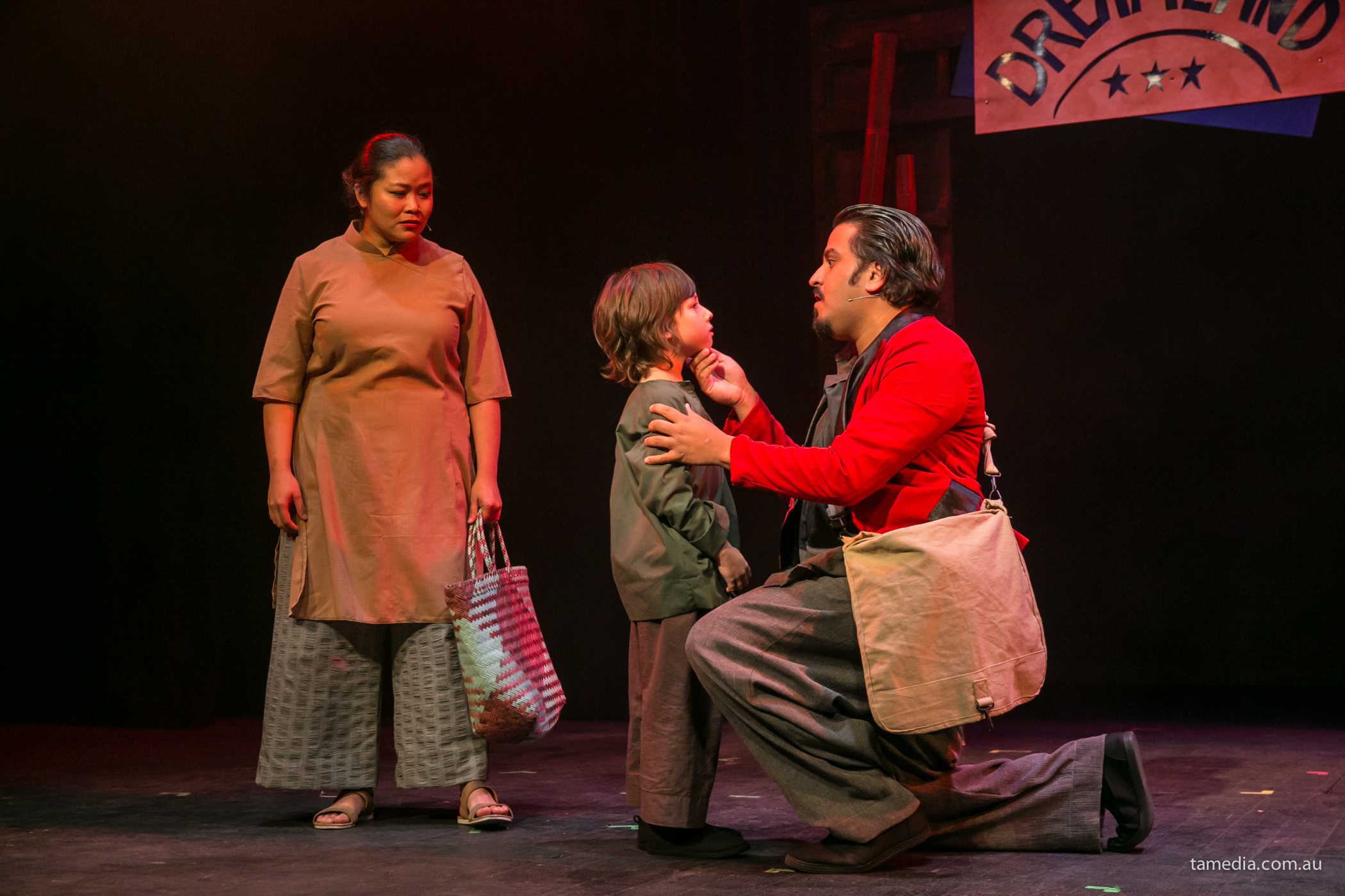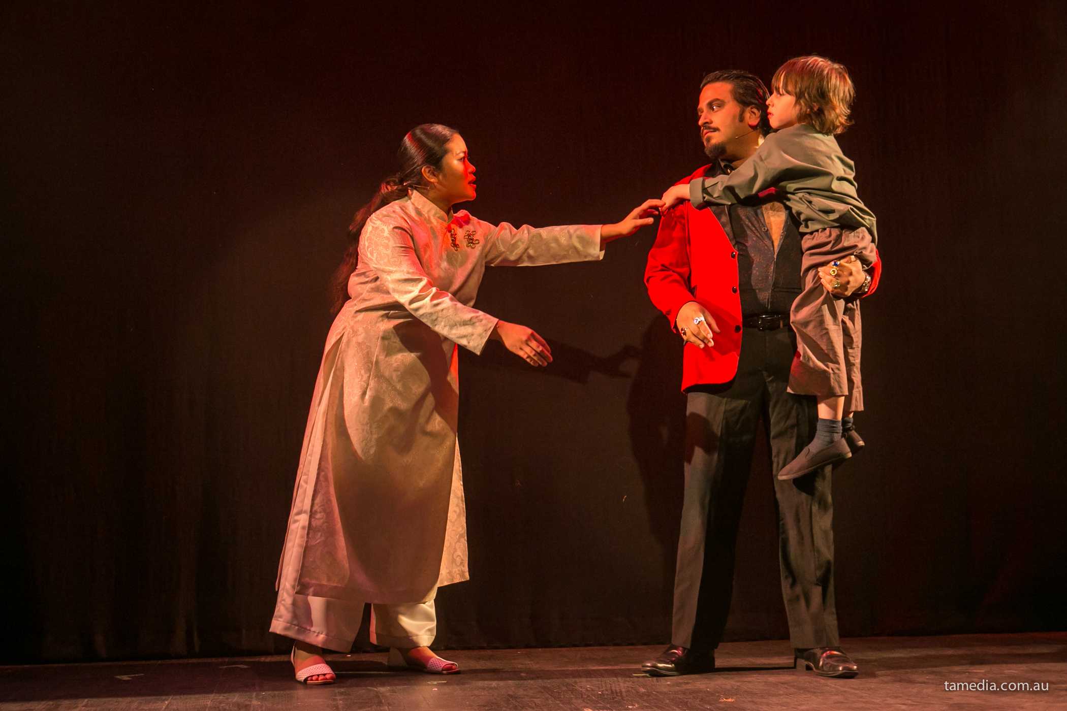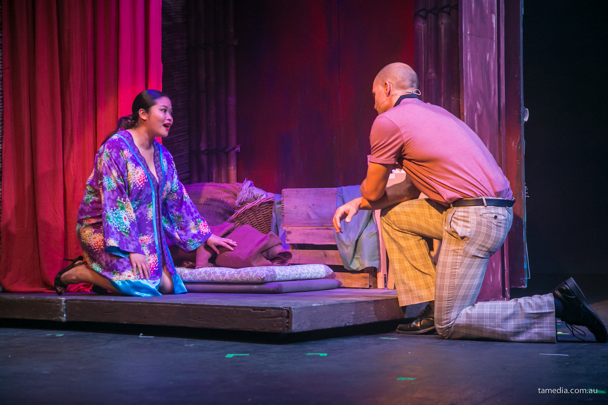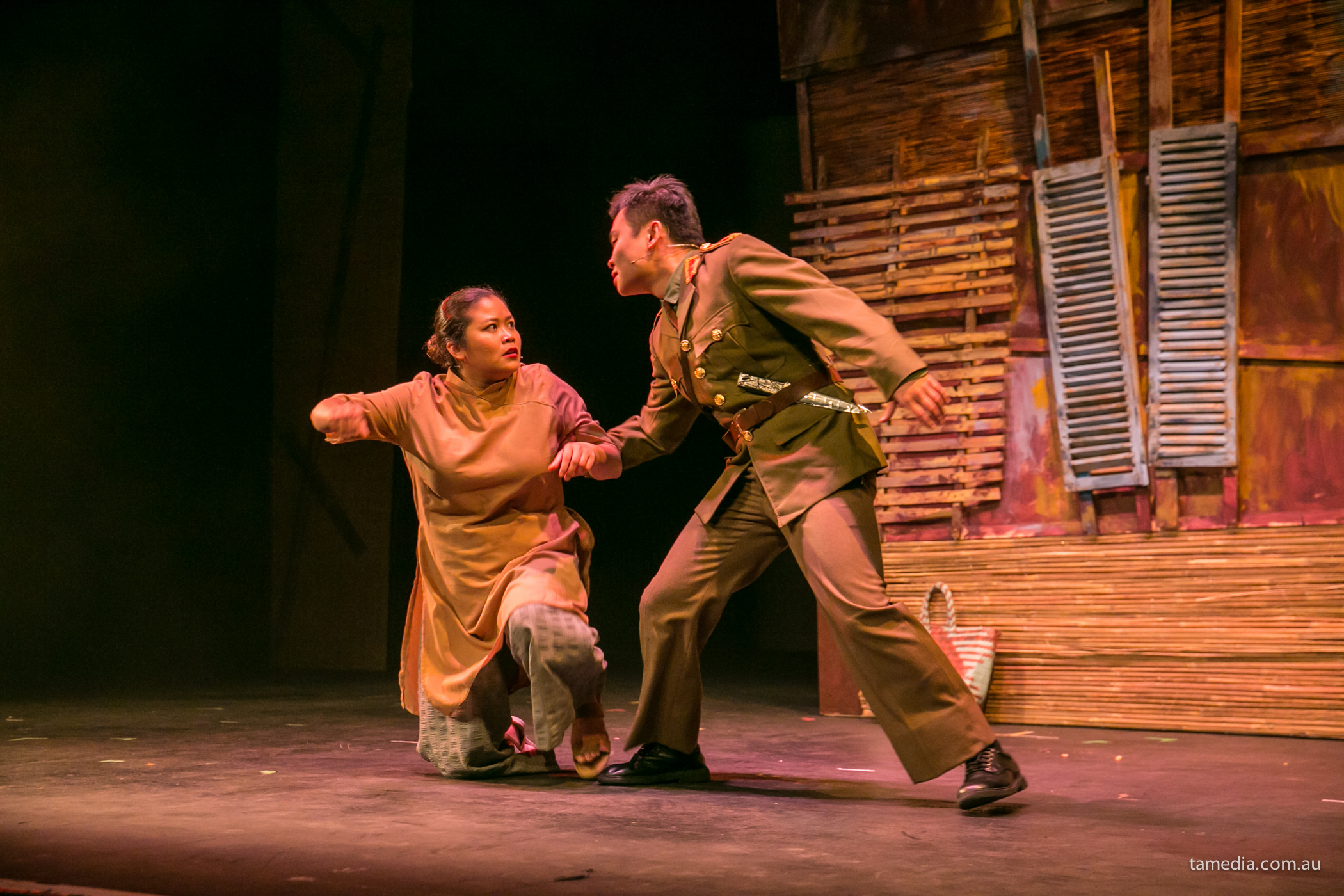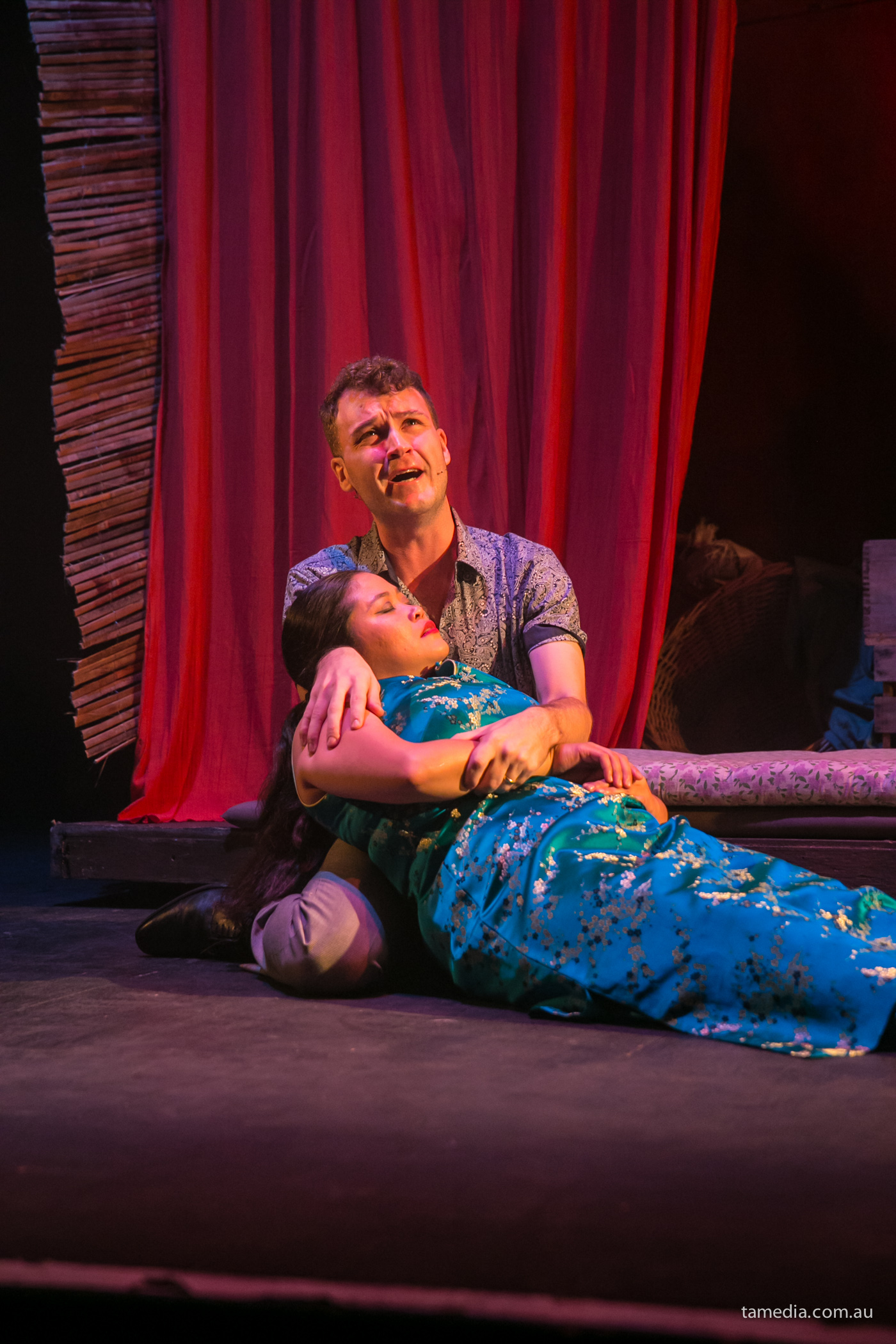 Miss Saigon is a stage musical by Claude-Michel Schönberg and Alain Boublil, with lyrics by Boublil and Richard Maltby Jr. It is based on Giacomo Puccini's 1904 opera Madama Butterfly, and similarly tells the tragic tale of a doomed romance involving an Asian woman abandoned by her American lover. The setting of the plot is relocated to 1970s Saigon during the Vietnam War, and Madame Butterfly's story of marriage between an American lieutenant and a geisha is replaced by a romance between a United States Marine and a seventeen-year-old South Vietnamese bargirl.
