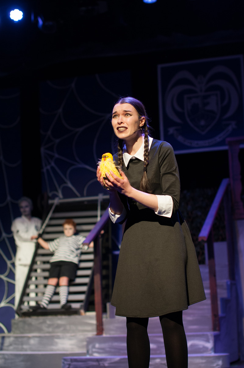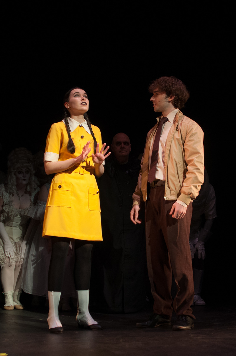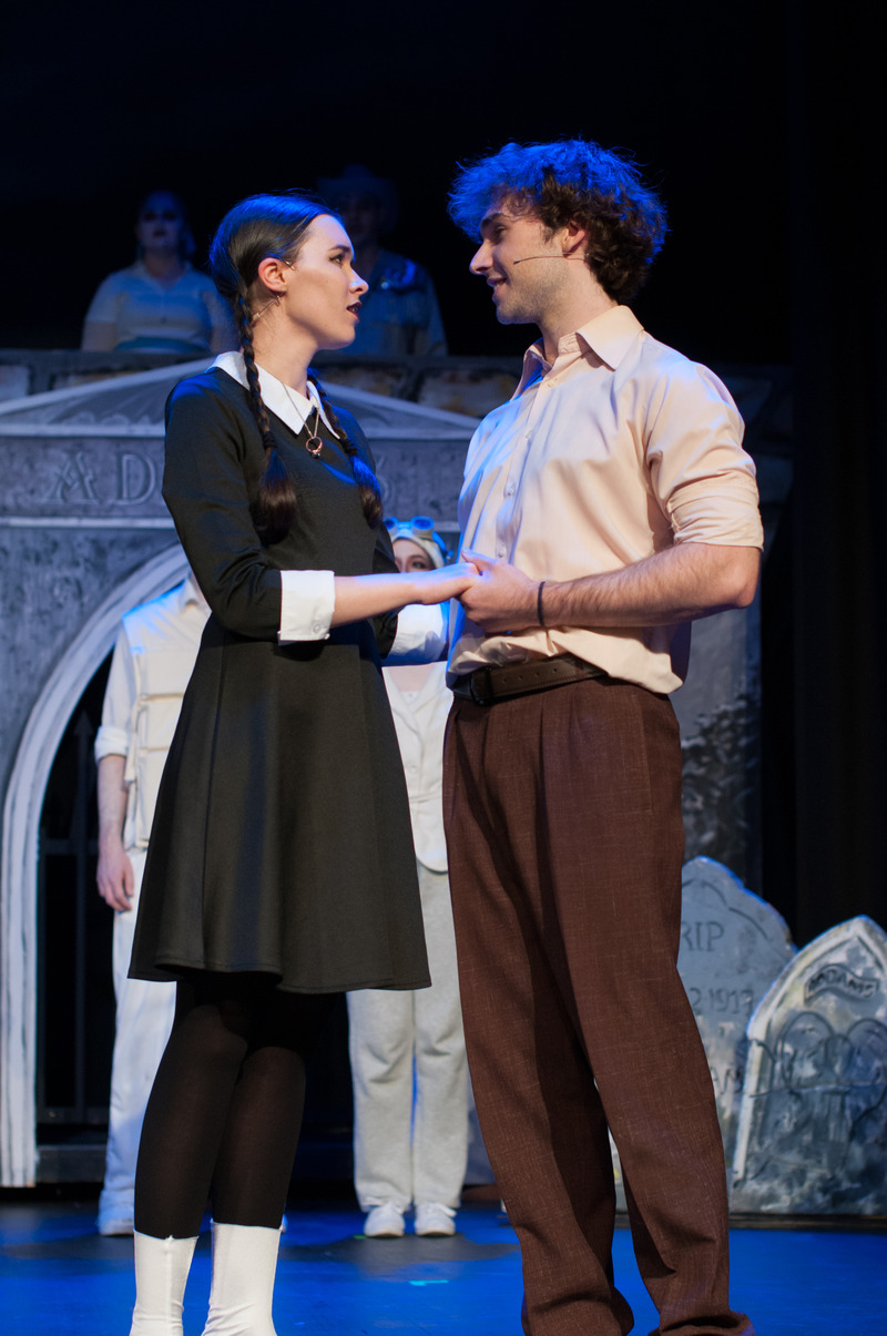 The Addams Family Broadway musical tells the story of Wednesday Addams, the ultimate princess of darkness, who falls in love with a "normal" boy named Lucas Beineke. To keep her family's unique traditions, Wednesday begs her father, Gomez, to keep her secret about Lucas and his family from her mother, Morticia. This leads to a chaotic night when the Addamses host the Beinekes for dinner, forcing Gomez to confront his secret and the Addams family to face the possibility of change.